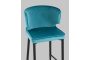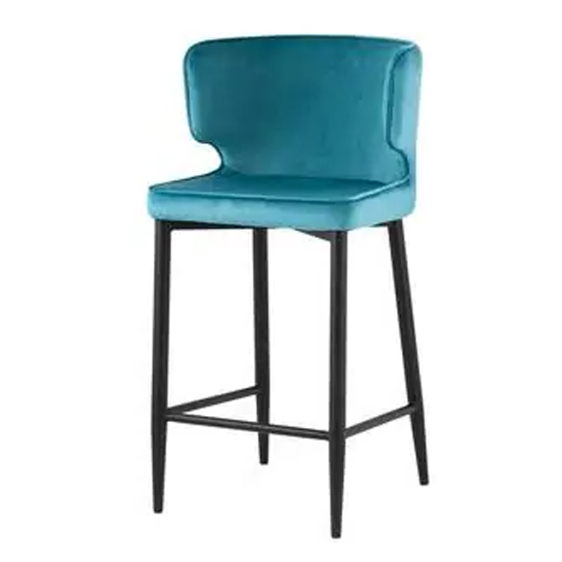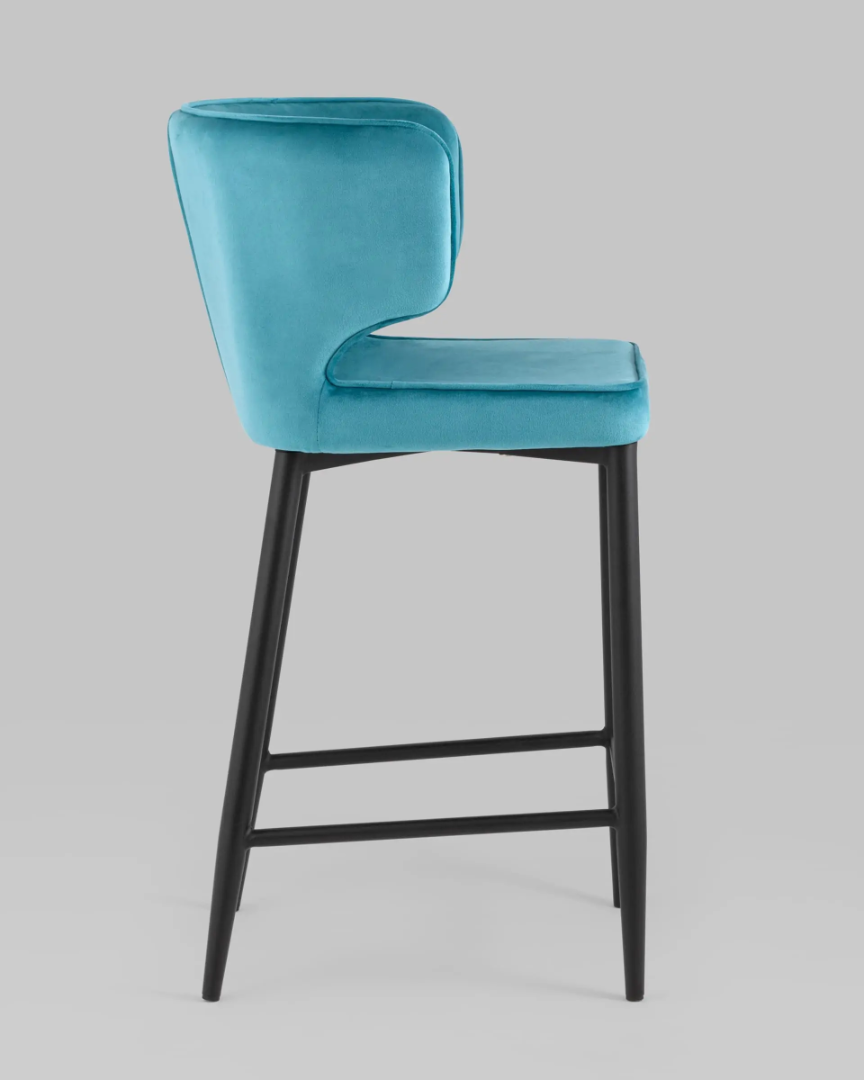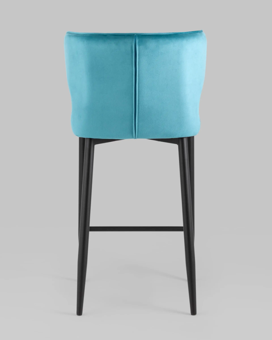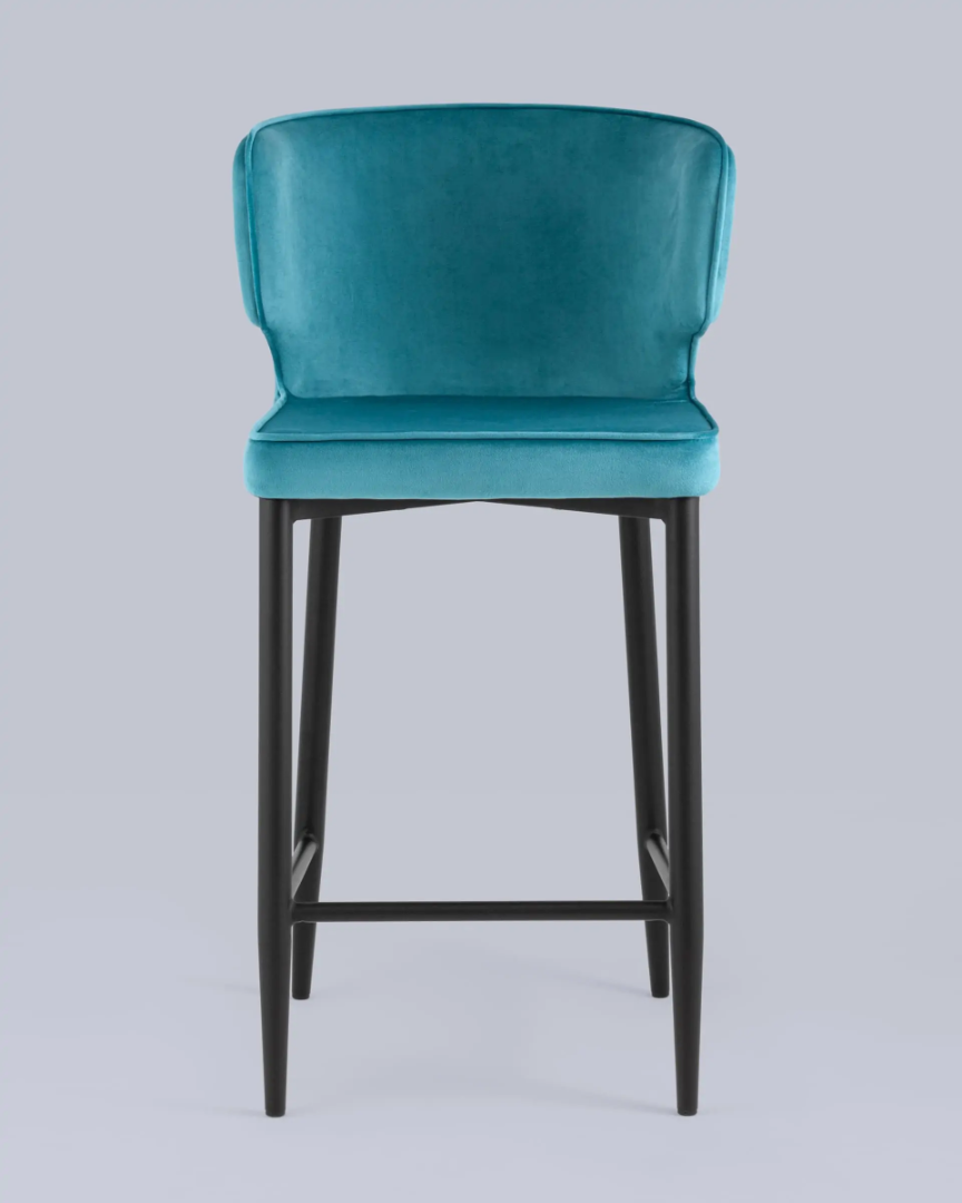 Мягкая обивка выполнена из велюра - прочного износостойкого материала. Прямые металлические ножки в черном цвете имеют нестандартную форму в виде перевернутого конуса, поэтому обеспечивают хорошую устойчивость и делают стул оригинальным. Удобная подножка позволяет расположиться максимально комфортно.