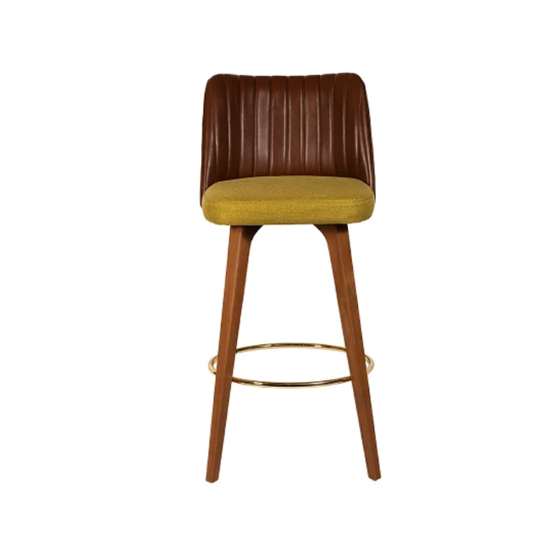 Запросить индивидуальное предложениеБарный стул с подлокотниками England в современном стиле. Каркас стула выполнен из массива бука. Сидение имеет мягкую подушку с обивкой в нежном велюре. Спинка стула обита кожей и декорирована драпировкой в складку. Деревянные ножки предусматривают металлическую подножку.Вы можете подобрать оттенок тонировки дерева и выбрать фактуру и расцветку ткани для мягкой обивки, которая подойдёт в ваш проект.
