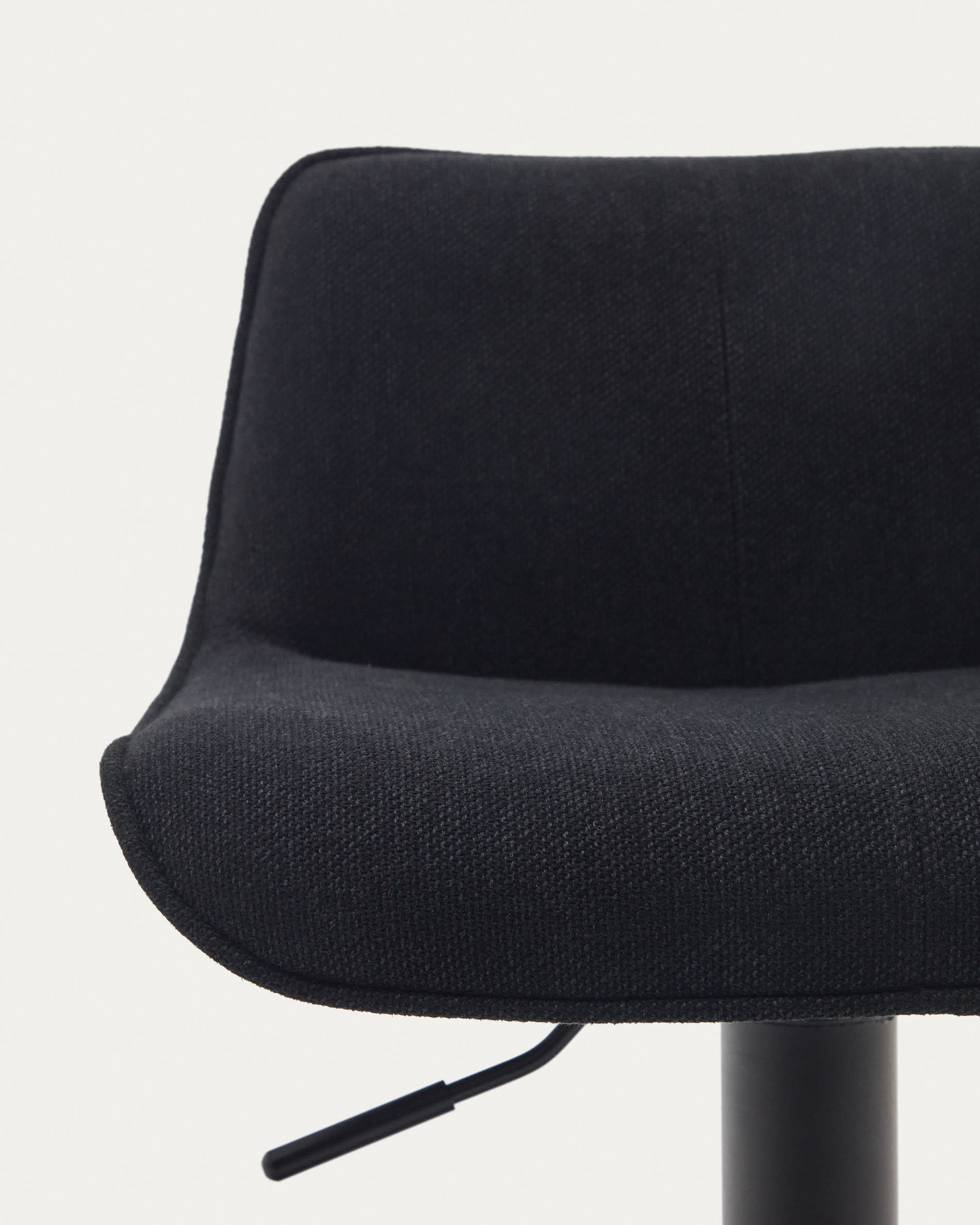 Барный стул Zenda из черной синели и матовой черной стали 81-102 см