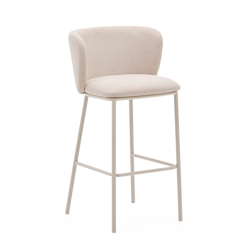 Барный стул Ciselia из бежевого шенилла и бежевой стали, 75 см