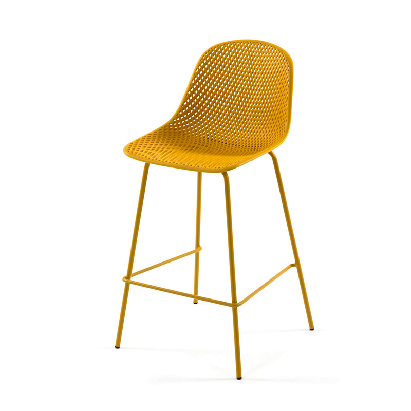 Запросить индивидуальное предложениеБарные и полубарные стулья Quinby от La Forma (ex Julia Grup) — современный дизайн, практичность, универсальность. При взгляде на эту коллекцию, сразу ловишь себя на мысли о том, как легко можно обставить интерьер барной зоны без крупных вложений. Стулья представлены разной высоты — барные и полубарные, в четырех цветах. Они эргономичны и современны, под них не нужно переделывать интерьер — и это факт. Стул конструкционно состоит из двух элементов — металлической опоры с четырьмя ножками и цельного сиденья. Оно имеет анатомическую форму внутри и обтекаемую снаружи, что эргономично и эстетично. Материал изготовления — пластик. Этот материал прочный, эргономичный, легкий. Сетчатая фактура добавляет оригинальности, выделяет среди похожих пластиковых моделей. Опора крепится на четырех болтах к тыльной стороне сиденья. Она металлическая, окрашена в тот же цвет, что и сиденье. Прочность металла гарантирует стойкость к высоким весовым нагрузкам. Дополнительный комфорт и устойчивость обеспечивает поперечная перекладина, проходящая по всему периметру опоры. В коллекции — изделия желтого, черного, белого и бежевого цвета. Изделия можно эксплуатировать в помещении и на улице. Материалы влагоустойчивы, легко очищаются от загрязнений. Цвета отделки указываются в соответствии с каталогом производителя. Допускается незначительное отклонение в цвете, обусловленное техническими особенностями цветопередачи фотографий.