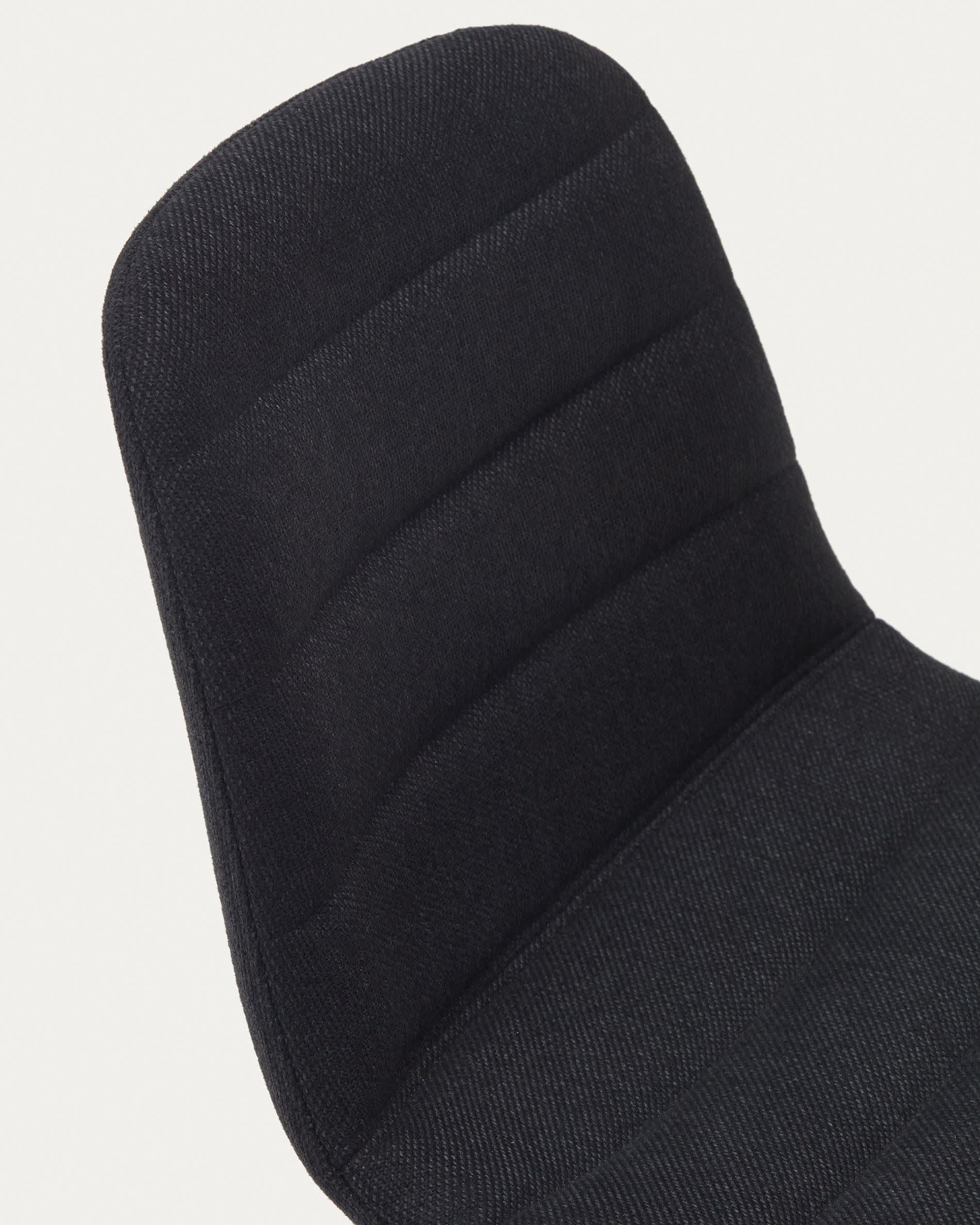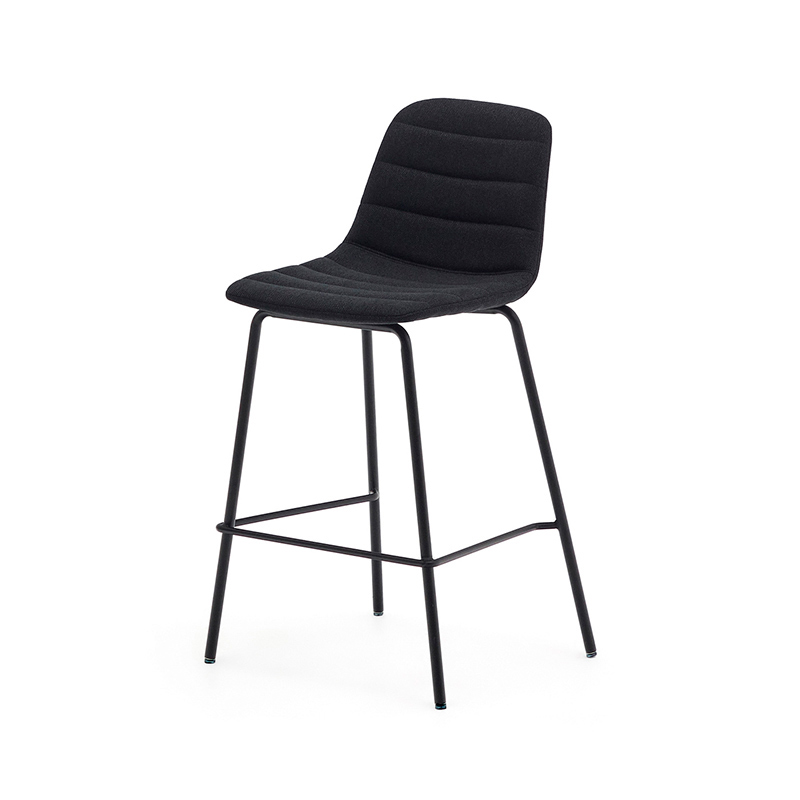 Полубарный стул Zunilda из черной синели и стали с матовой черной отделкой, высота сиденья 65 см.