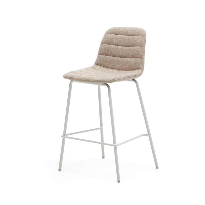 Полубарный стул Zunilda из синели бежевого цвета и стали с матовой белой отделкой
