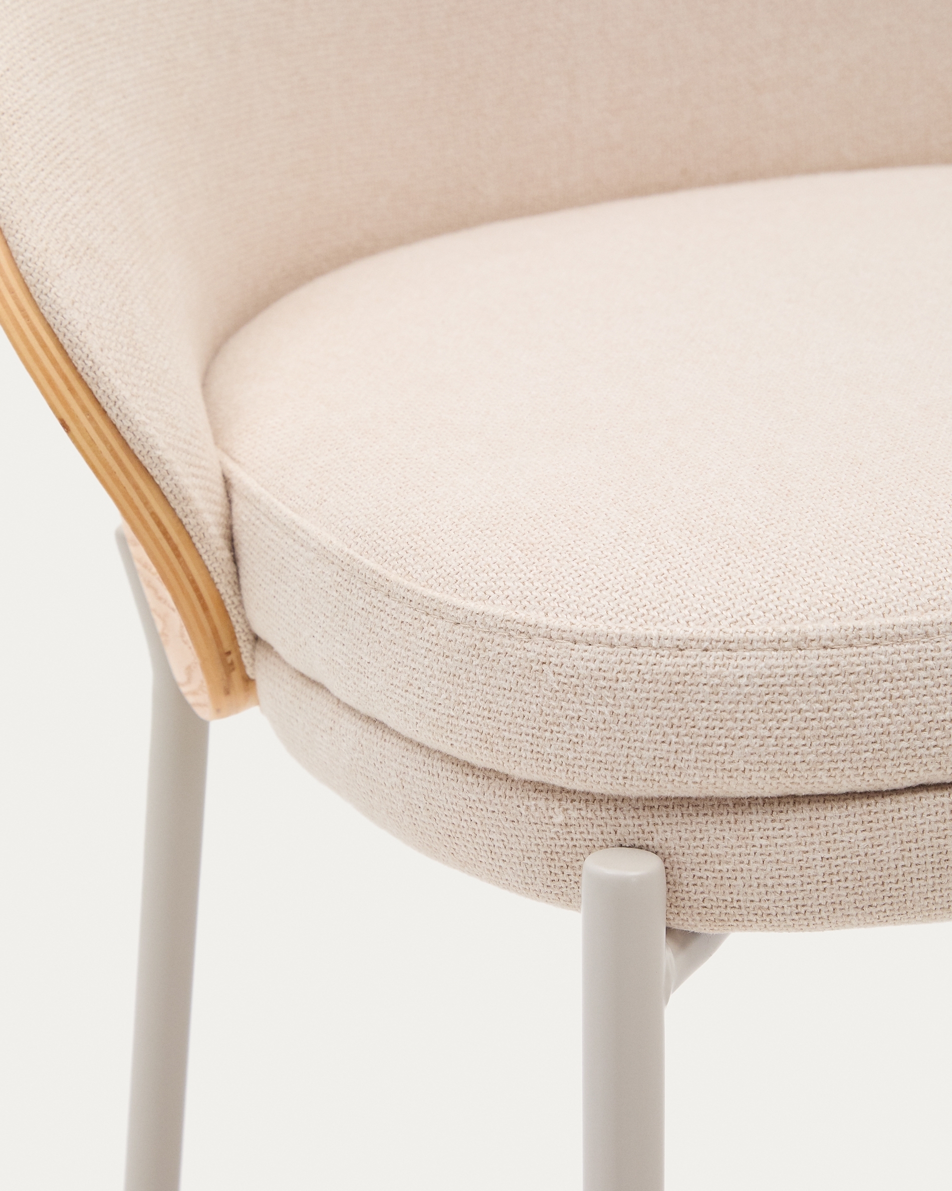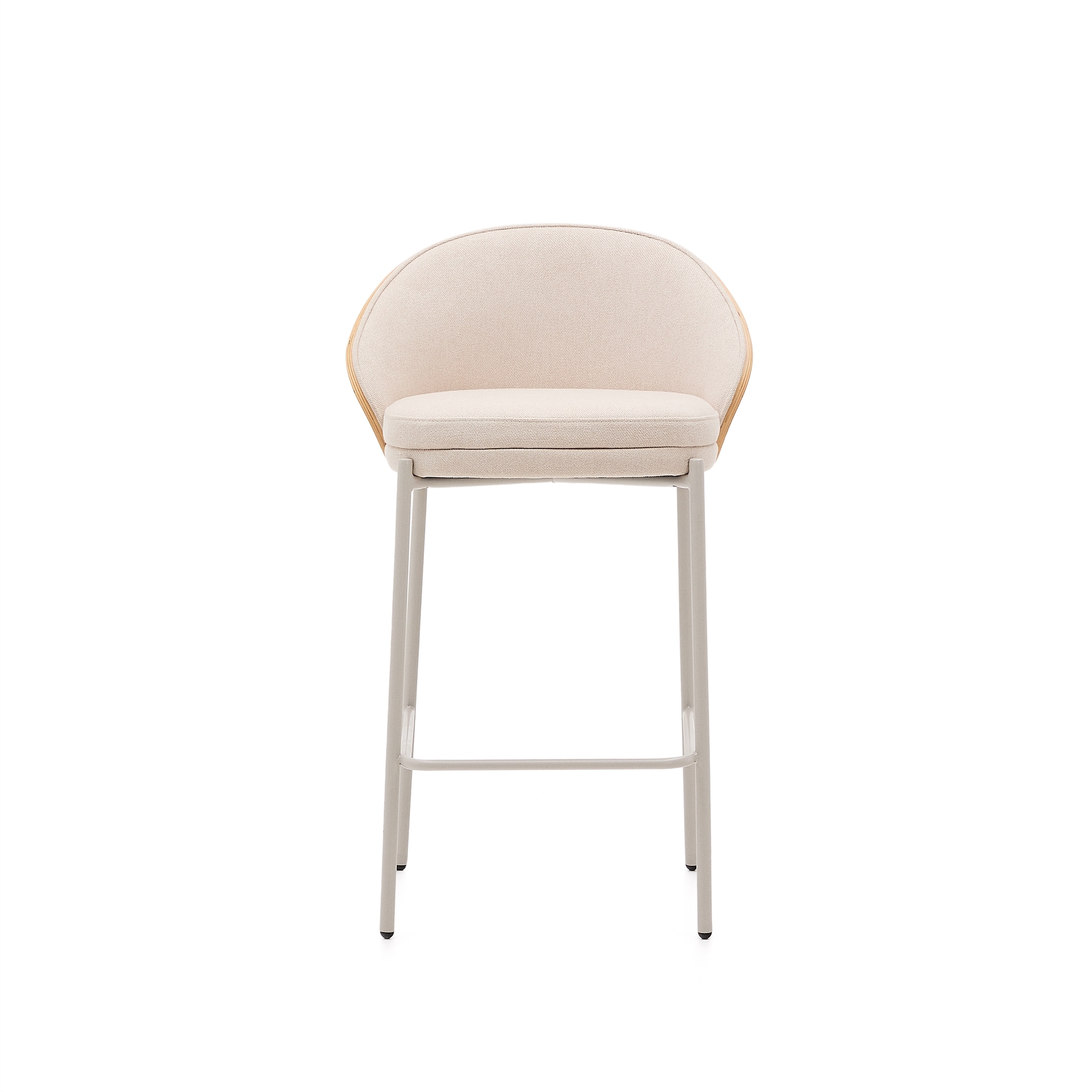 Полубарный стул Eamy бежевая синель, ясеневый шпон и бежевый металл