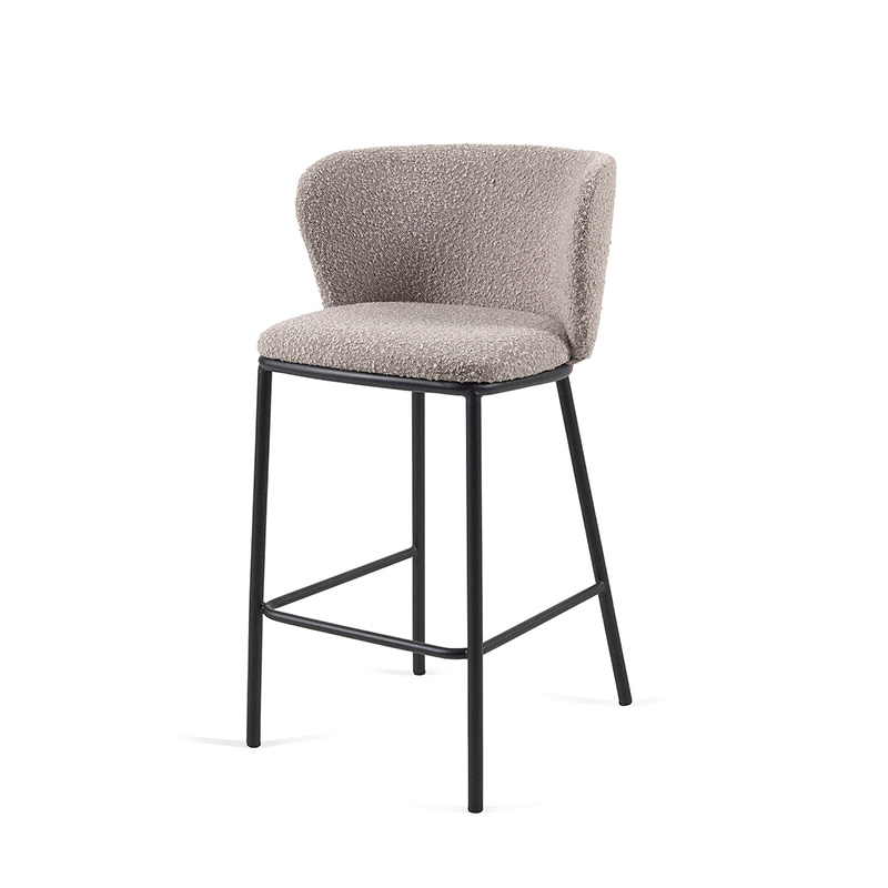 Полубарный стул Ciselia из серой ткани букле и черного металла 65 см