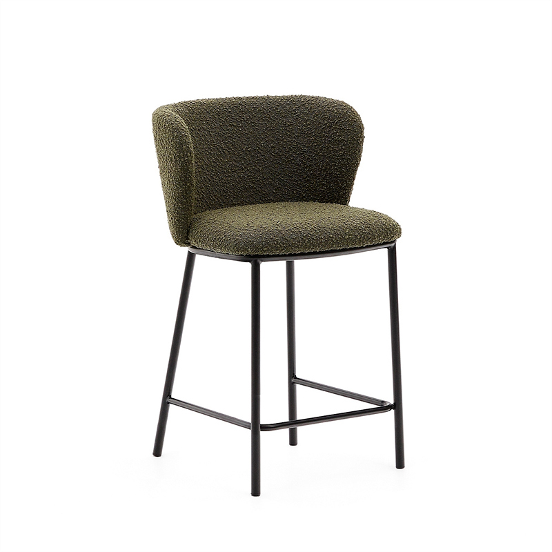 Полубарный стул Ciselia из зеленого букле и черной стали, 65 см