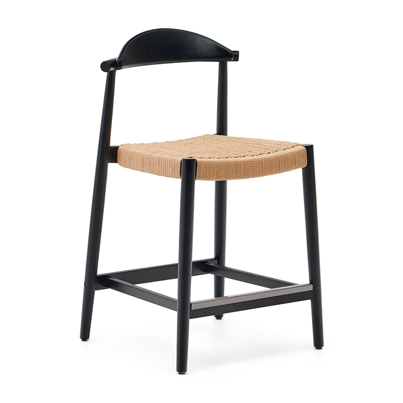 Nina Полубарный стул из массива акации с черной отделкой и бежевой веревкой 62 см