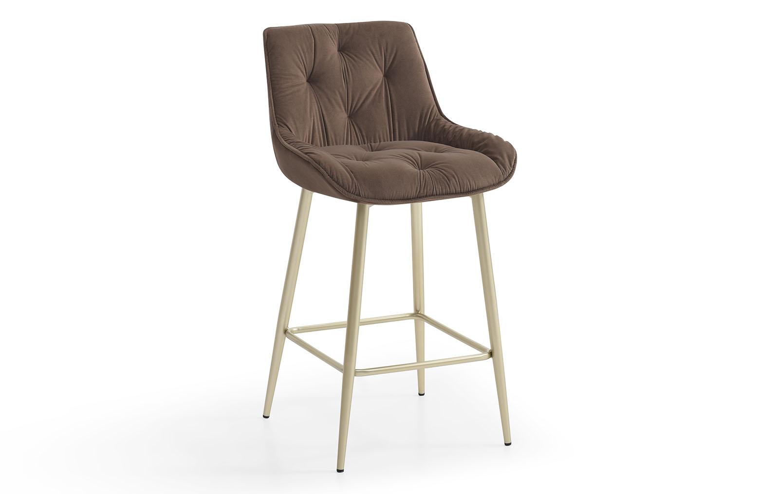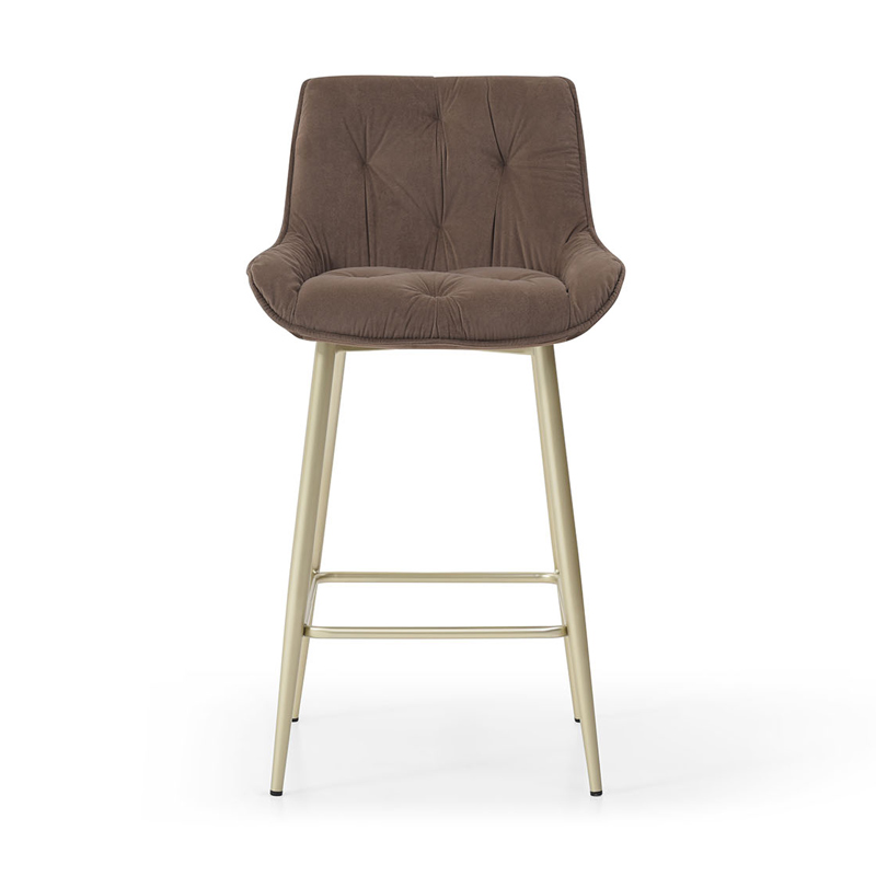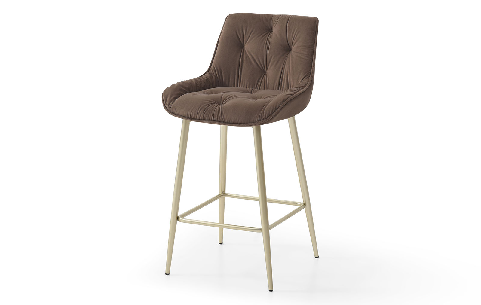 Стулья полубарные Joely Bar (Джоэли Бар) с простеганным сиденьем обивкой из коричневого велюра станут украшением интерьера кухни или гостиной. Ножки выполнены из металла и окрашены в цвет золотистый шампань.