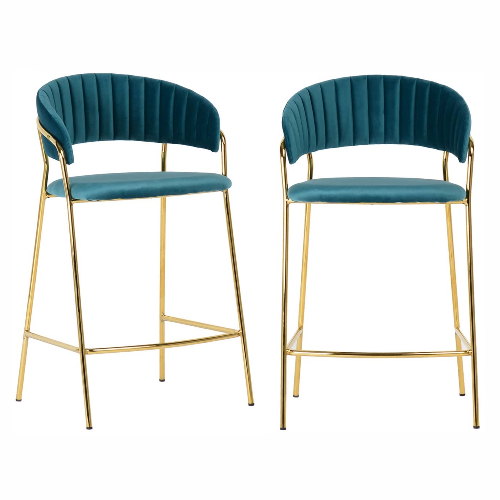 Комплект из 2-х стульев полубарных Turin бирюзовый с золотыми ножками