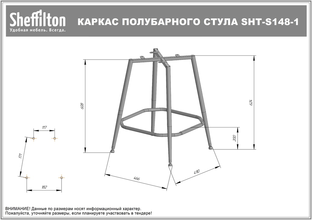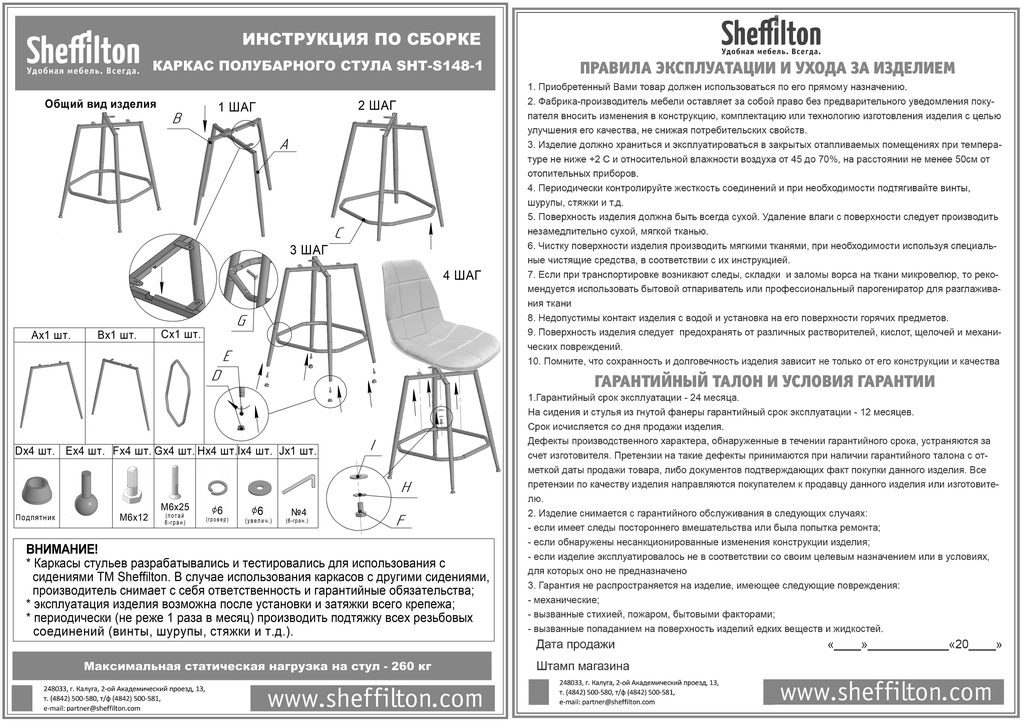 Ножки каркаса дополнены шарнирными подпятниками, регулируемыми по высоте. Они позволяют использовать готовый стул даже на неровной поверхности.