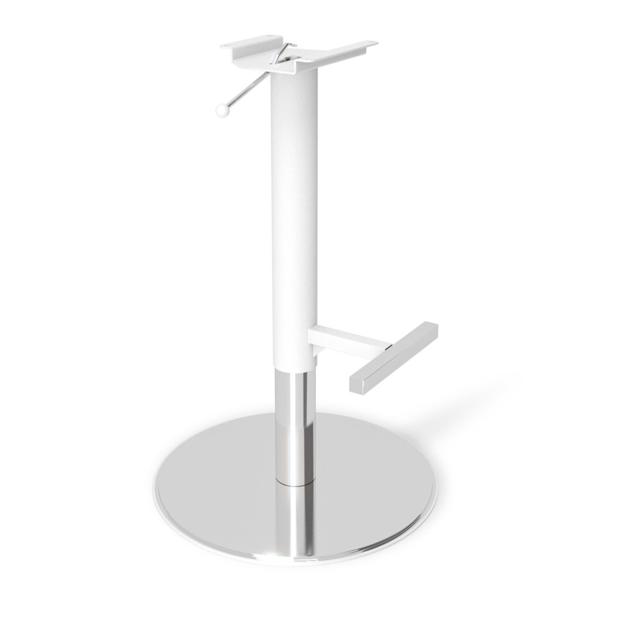 СТИЛЬНЫЙ ДИЗАЙН. Каркас выполнен из металла с белой матовой краской и блестящим гальваническим хромом. Модель располагается на одной высокой ножке цилиндрической формы. Внизу она плавно переходит в основание, сделанное в виде круга.