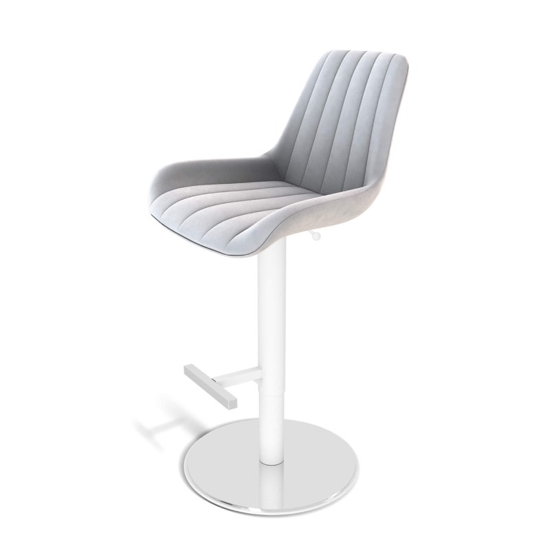 СТИЛЬНЫЙ ДИЗАЙН. Каркас выполнен из металла с белой матовой краской и блестящим гальваническим хромом. Модель располагается на одной высокой ножке цилиндрической формы. Внизу она плавно переходит в основание, сделанное в виде круга. Прострочка вдоль сидения и спинки придает изделию классический и стильный вид. Нежная расцветка микровелюра внесет уют и воздушность в интерьер.