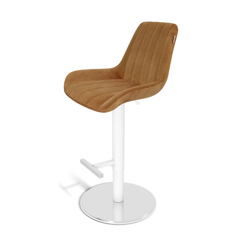 СТИЛЬНЫЙ ДИЗАЙН. Каркас выполнен из металла с белой матовой краской и блестящим гальваническим хромом. Модель располагается на одной высокой ножке цилиндрической формы. Внизу она плавно переходит в основание, сделанное в виде круга. Прострочка вдоль сидения и спинки придает изделию классический и стильный вид. Нежная расцветка микровелюра внесет уют и воздушность в интерьер.