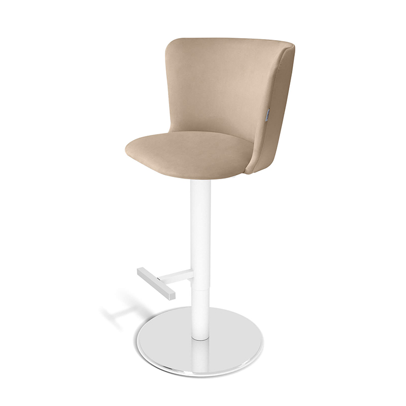 Запросить индивидуальное предложениеСТИЛЬНЫЙ ДИЗАЙН заключен в королевской форме сидения и оригинальной отстрочке спинки. Нежная расцветка микровелюра внесет уют и воздушность в интерьер. Каркас выполнен из металла с белой матовой краской и блестящим гальваническим хромом. Модель располагается на одной высокой ножке цилиндрической формы. Внизу она плавно переходит в основание, сделанное в виде круга.