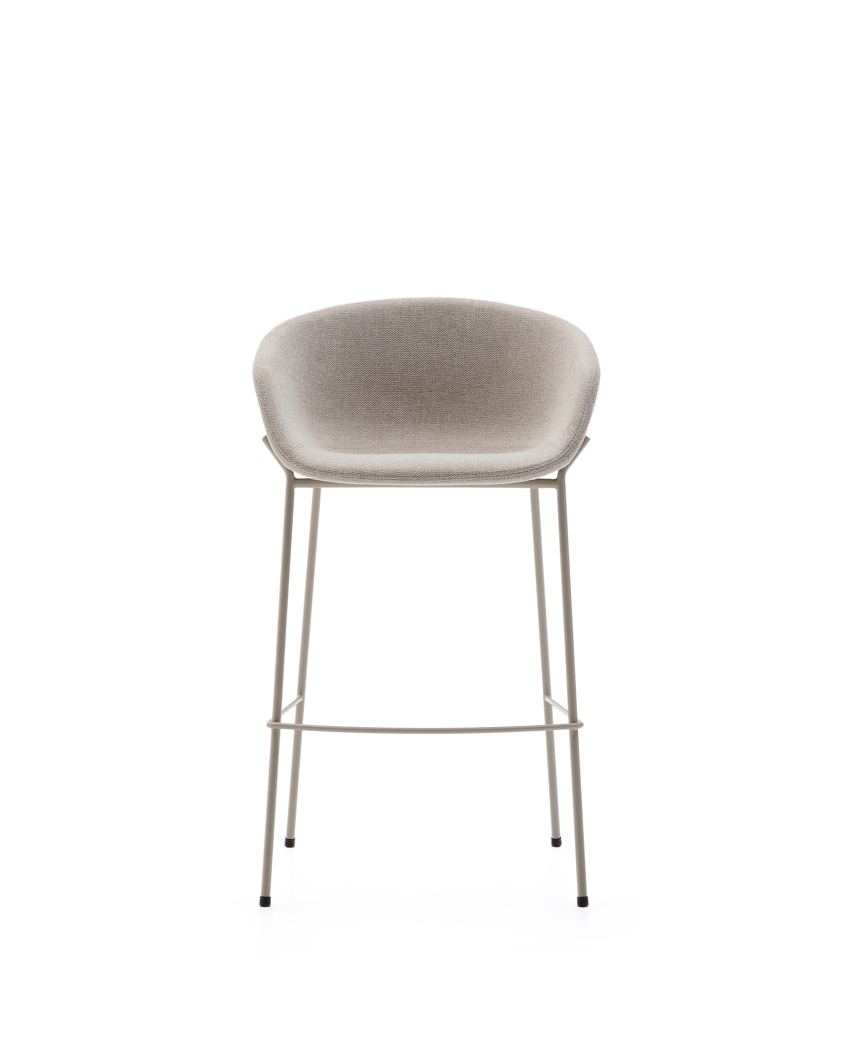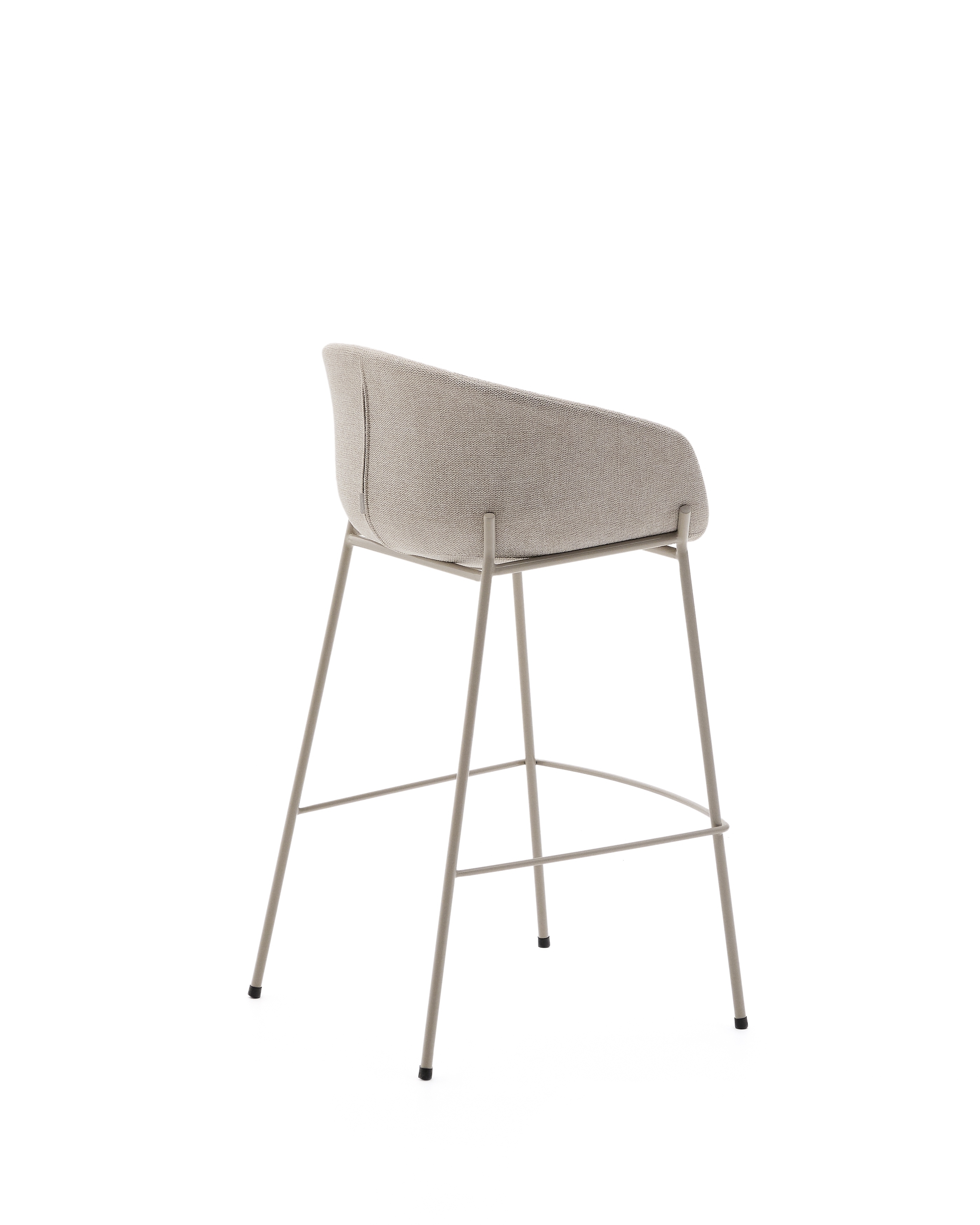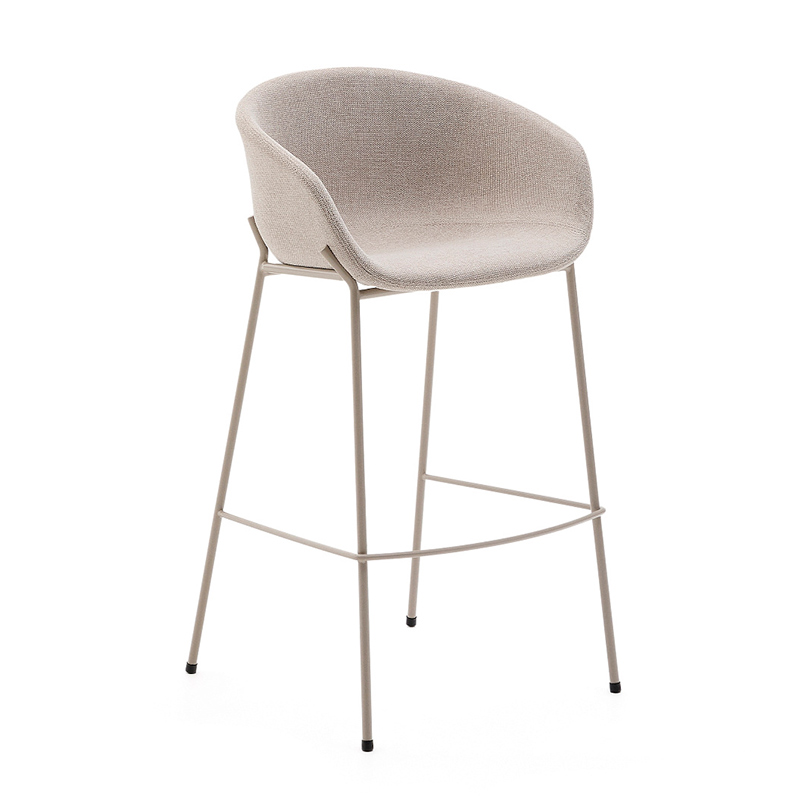 Барный стул Yvette из бежевого шенилла с бежевыми стальными ножками 75 см