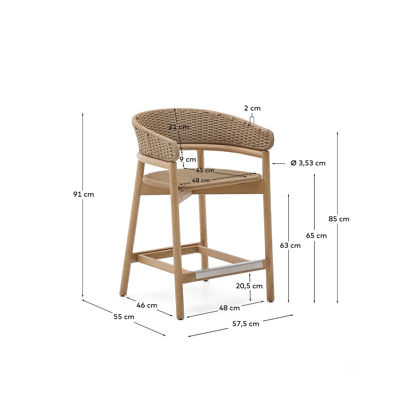 Arinella Полубарный стул из массива акации и коричневой веревки 65 см