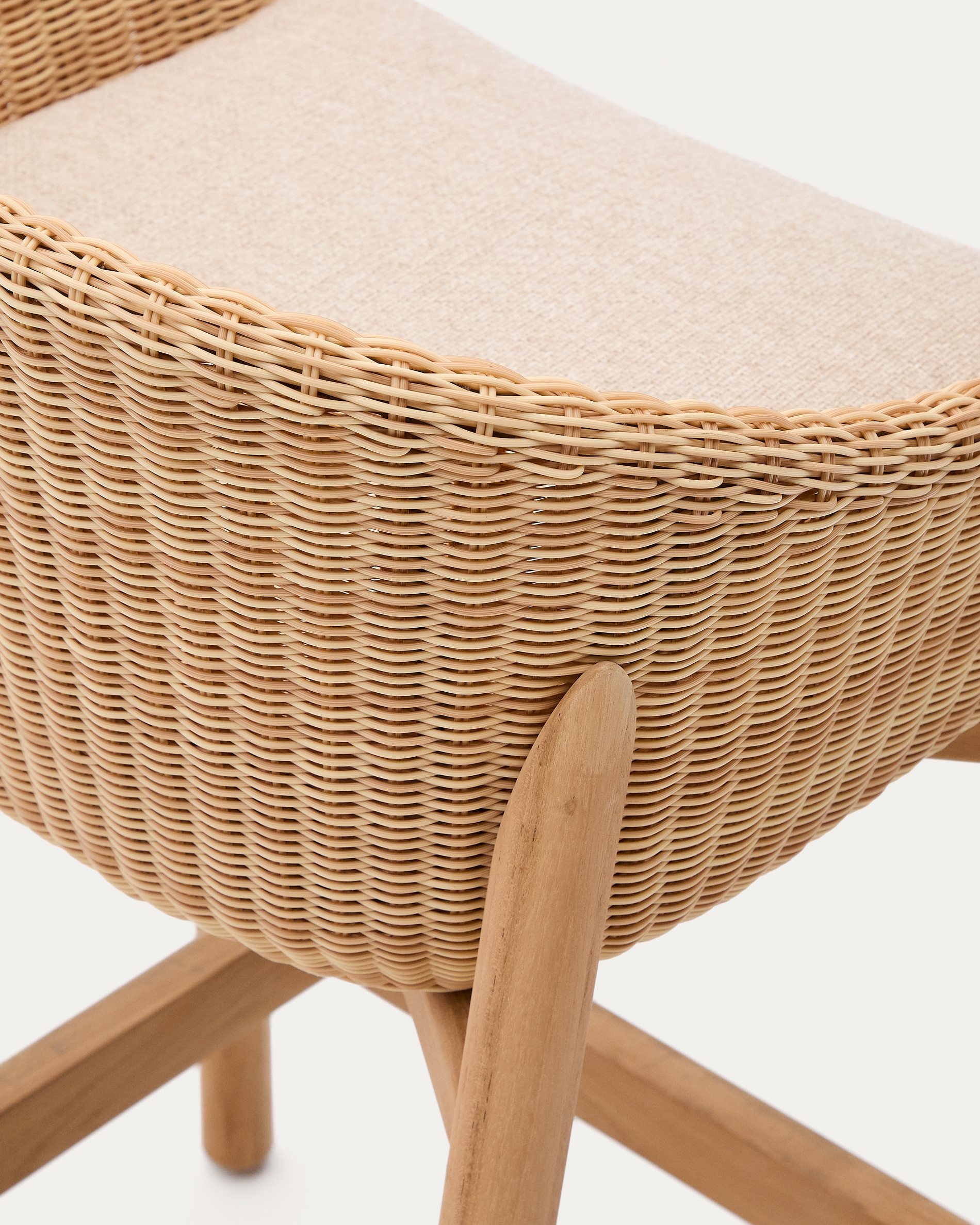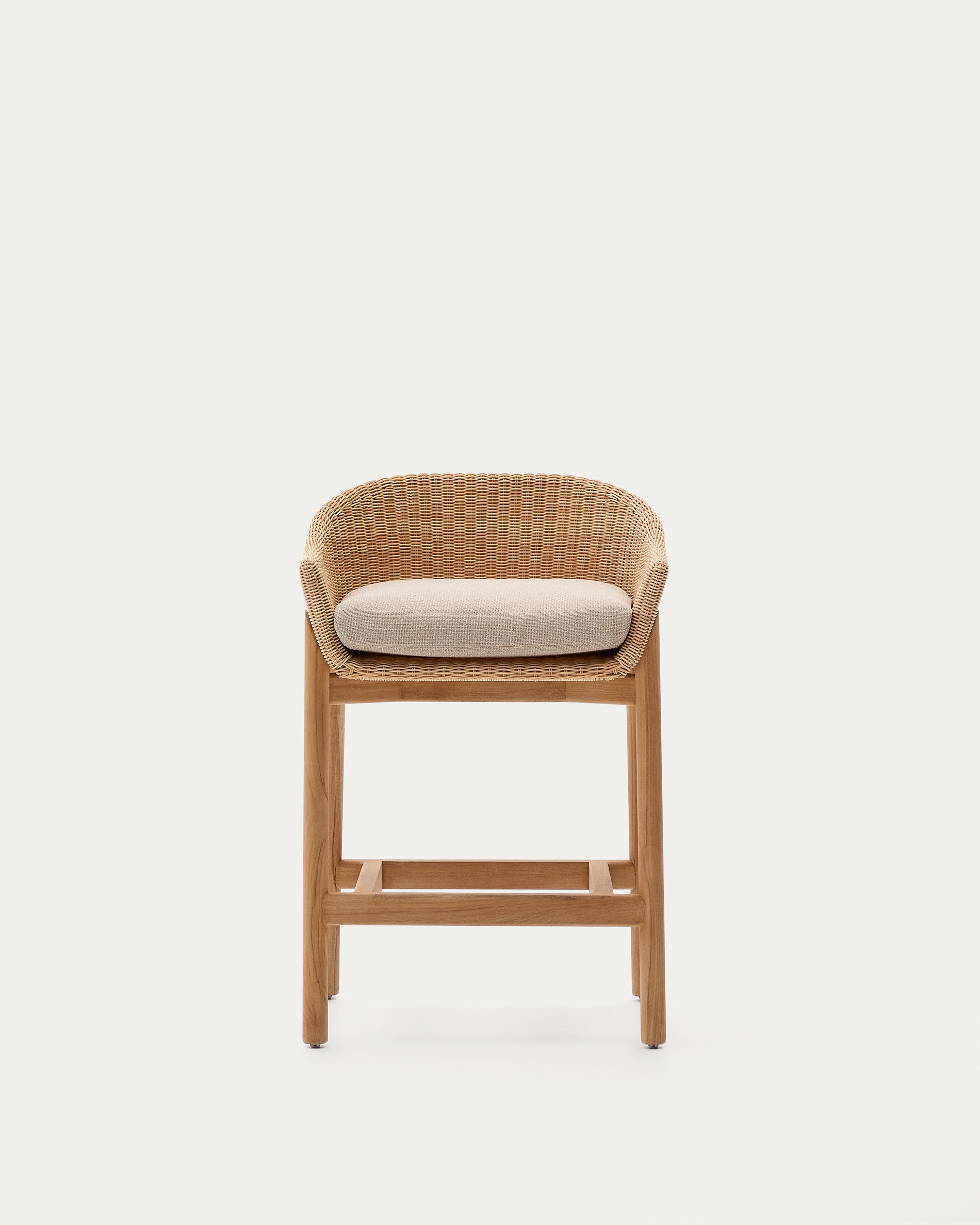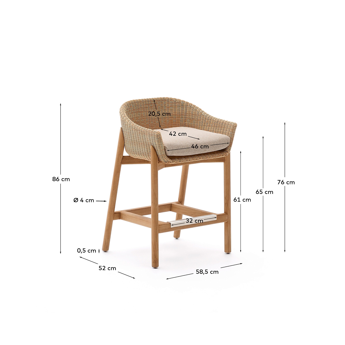 Полубарный стул Galea из тикового дерева и синтетического ротанга, 65 см