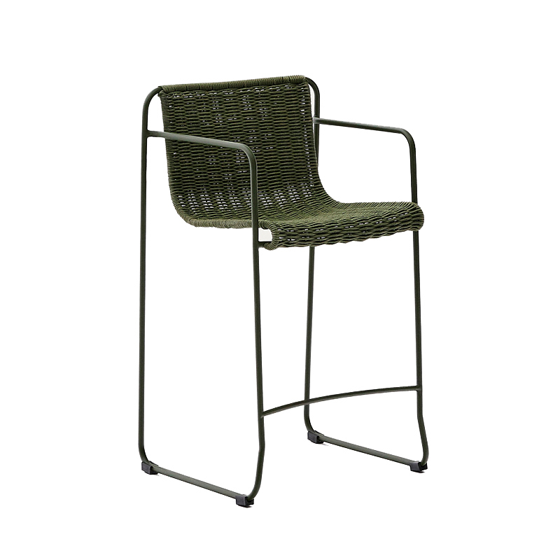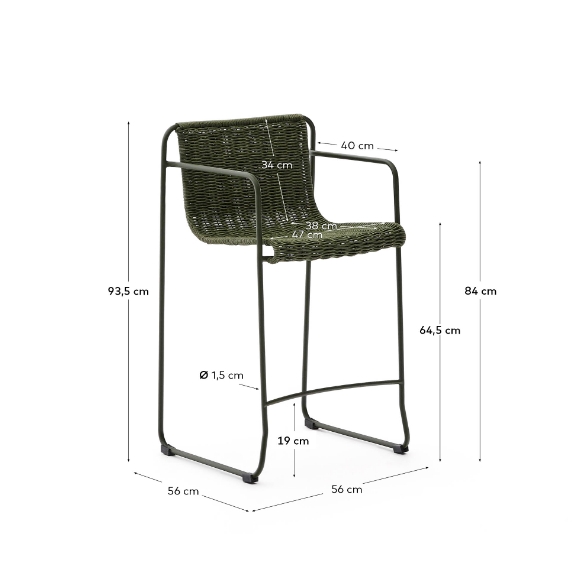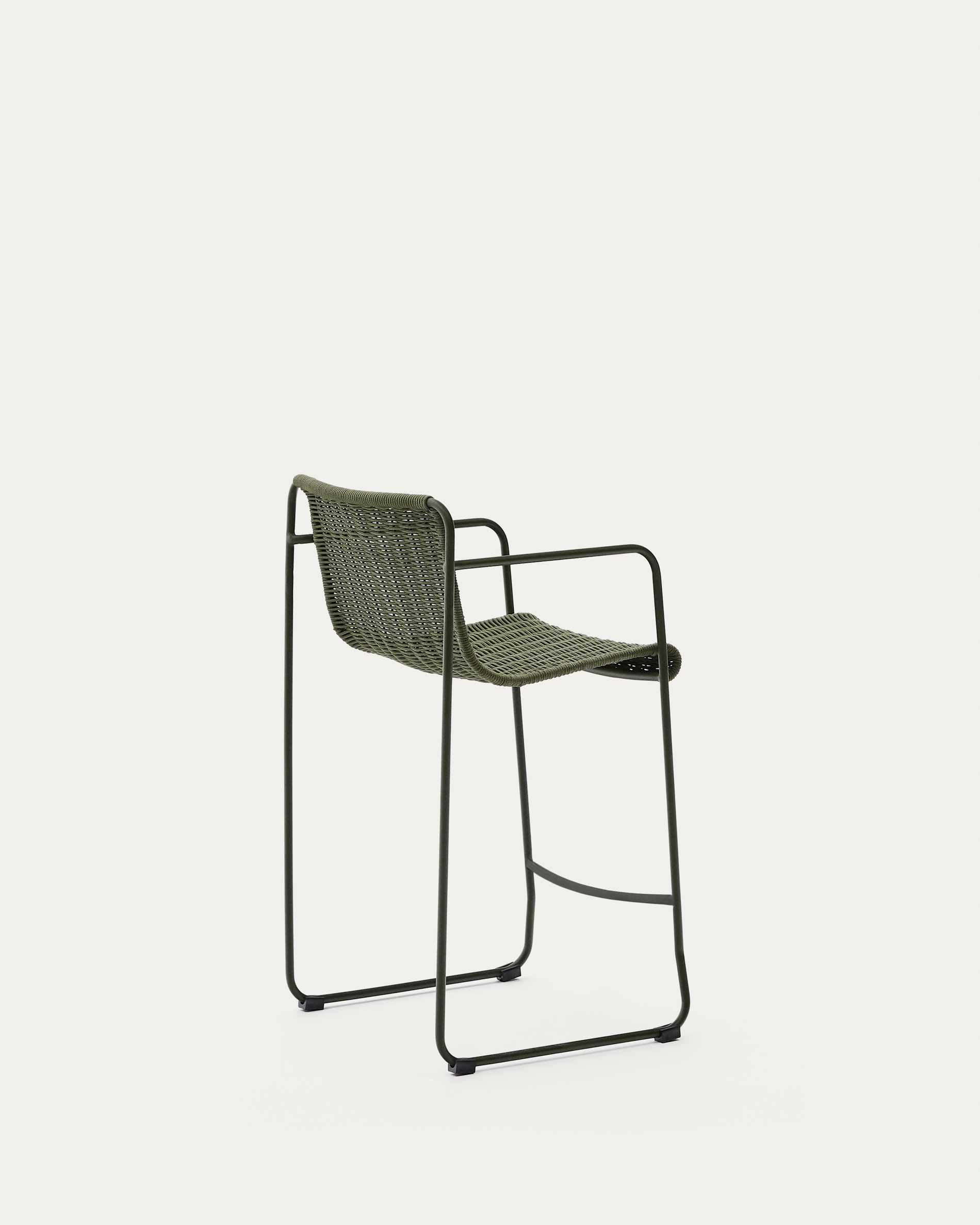 Полубарный стул Maurina из зелёной оцинкованной стали и зелёного шнура 64,5 см