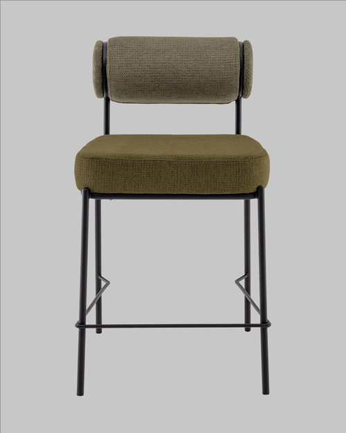 Полубарный стул Ponpoun выполнен в стильном зеленом цвете, обит приятным на ощупь шениллом. Каркас и ножки изготовлены из прочного черного металла, обеспечивающего надежность и устойчивость конструкции.