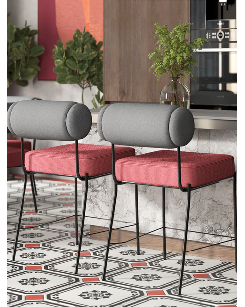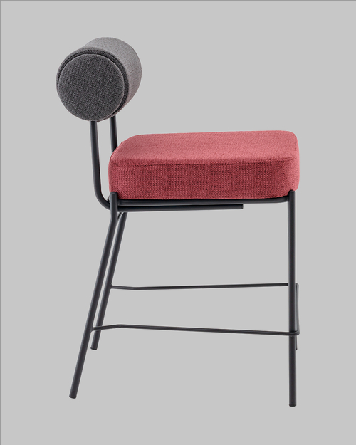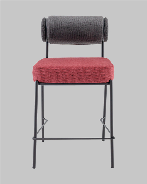 Полубарный стул Ponpoun выполнен в стильном сочетании бордового сиденья и темно-серой спинки, обитых приятным на ощупь шениллом. Каркас и ножки изготовлены из прочного черного металла, обеспечивающего надежность и устойчивость конструкции.