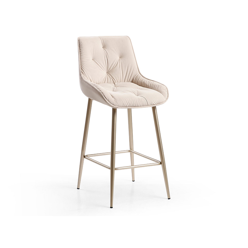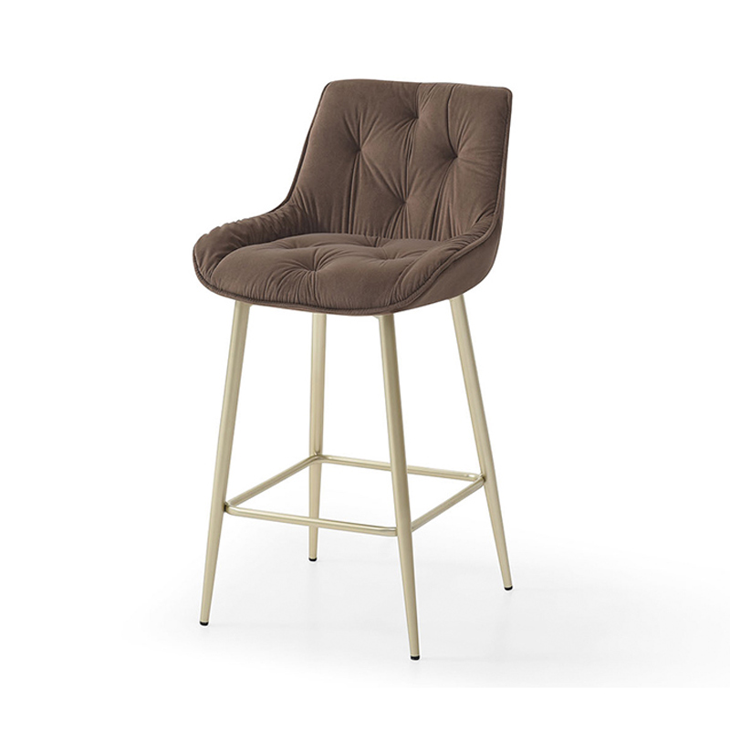 Запросить индивидуальное предложениеСтулья барные Joely Bar (Джоэли Бар) с простеганным сиденьем обивкой из коричневого велюра станут украшением интерьера кухни или гостиной. Ножки выполнены из металла и окрашены в цвет золотистый шампань.