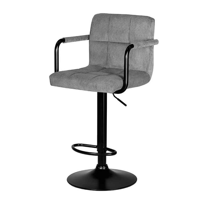Стул барный DOBRIN KRUGER ARM BLACK, серый вельвет (LAR-E2041-25)
