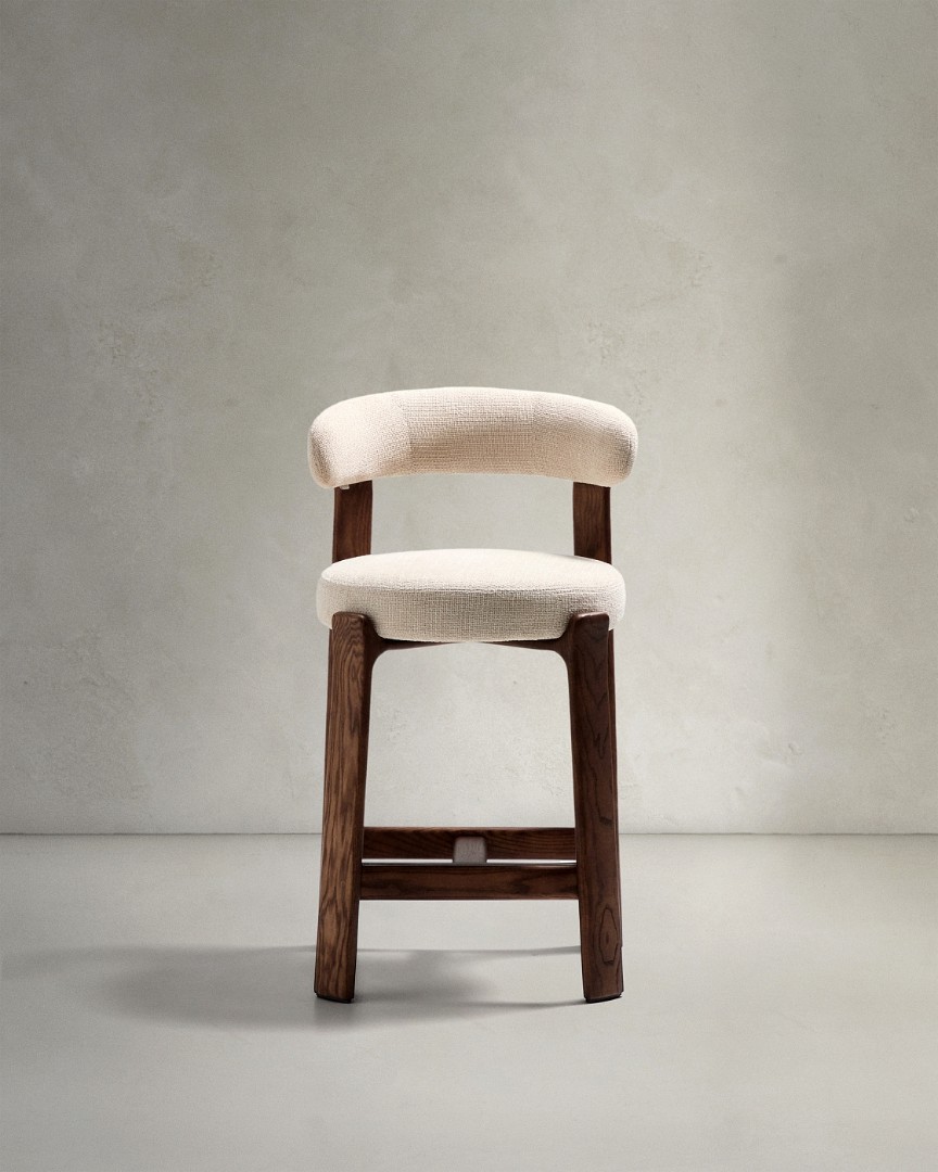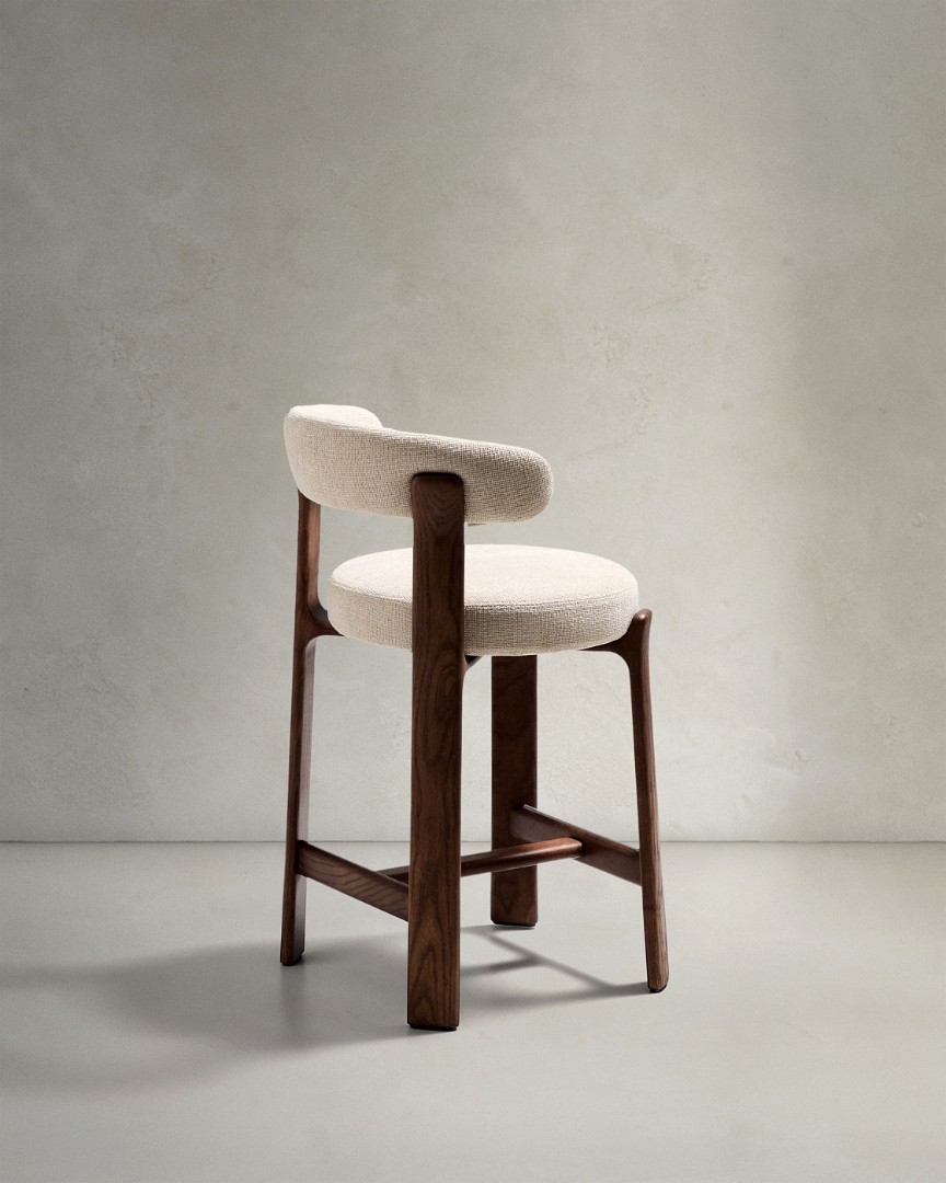 Полубарный стул Granite из бежевой синели и ясеня с отделкой орех 65 см