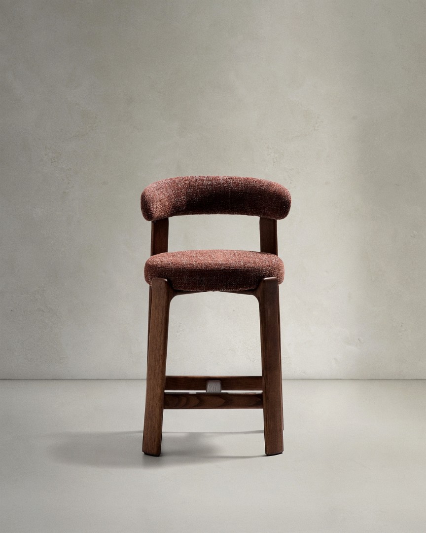 Полубарный стул Granite из коричневой синели и ясеня с отделкой орех 65 см