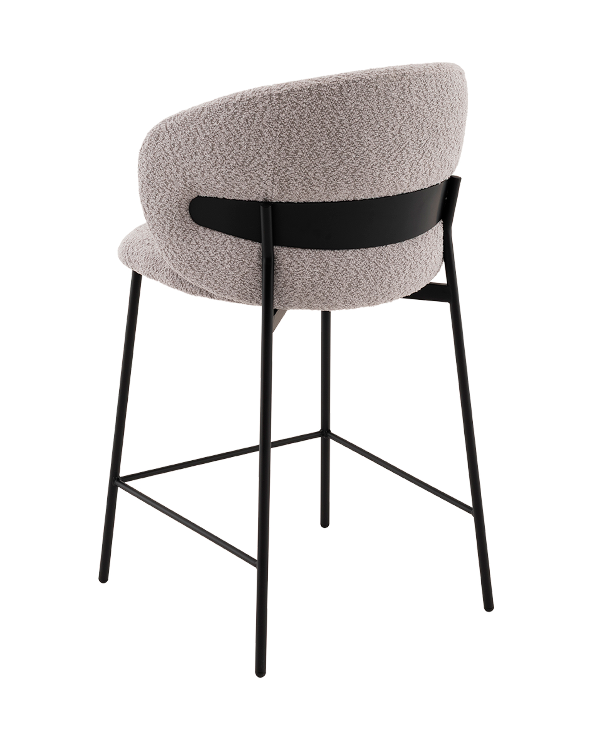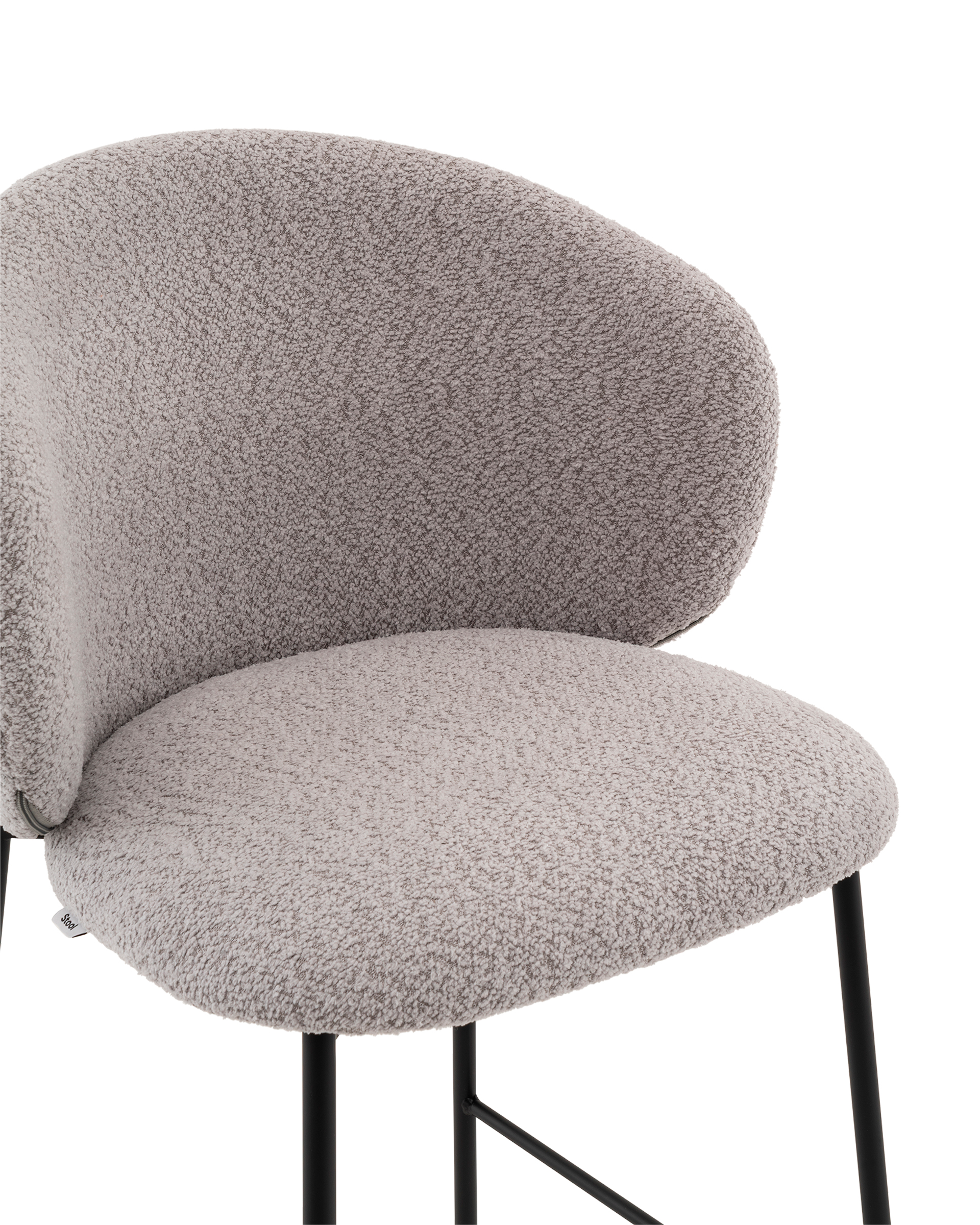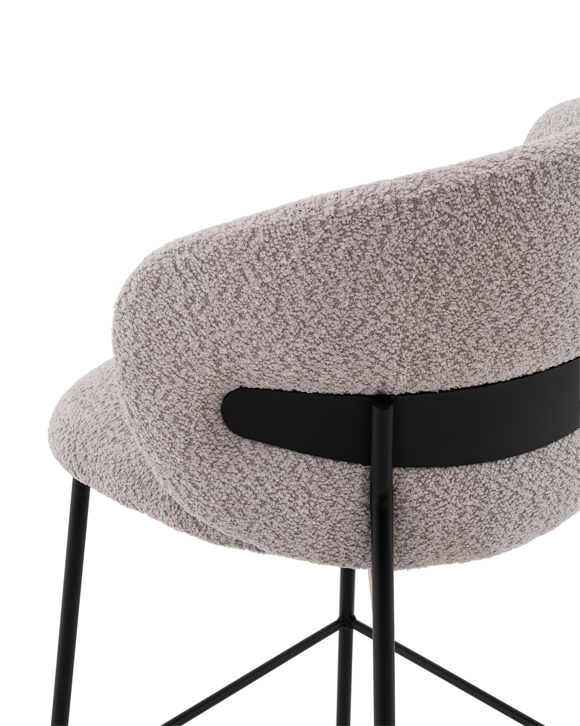 Удобство в каждой детали. Мягкое сиденье и спинка из букле обеспечивают комфорт, а округлая форма спинки поддерживает поясницу и создаёт уютное ощущение. Наличие подставки для ног делает посадку более расслабленной и естественной, особенно при длительном использовании.