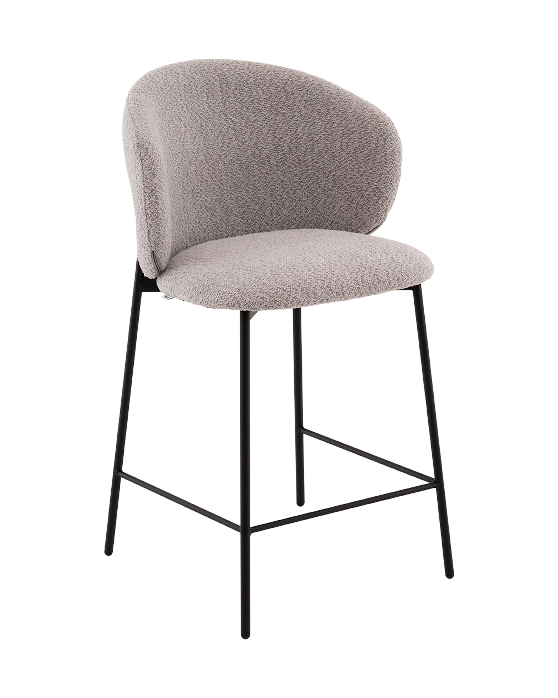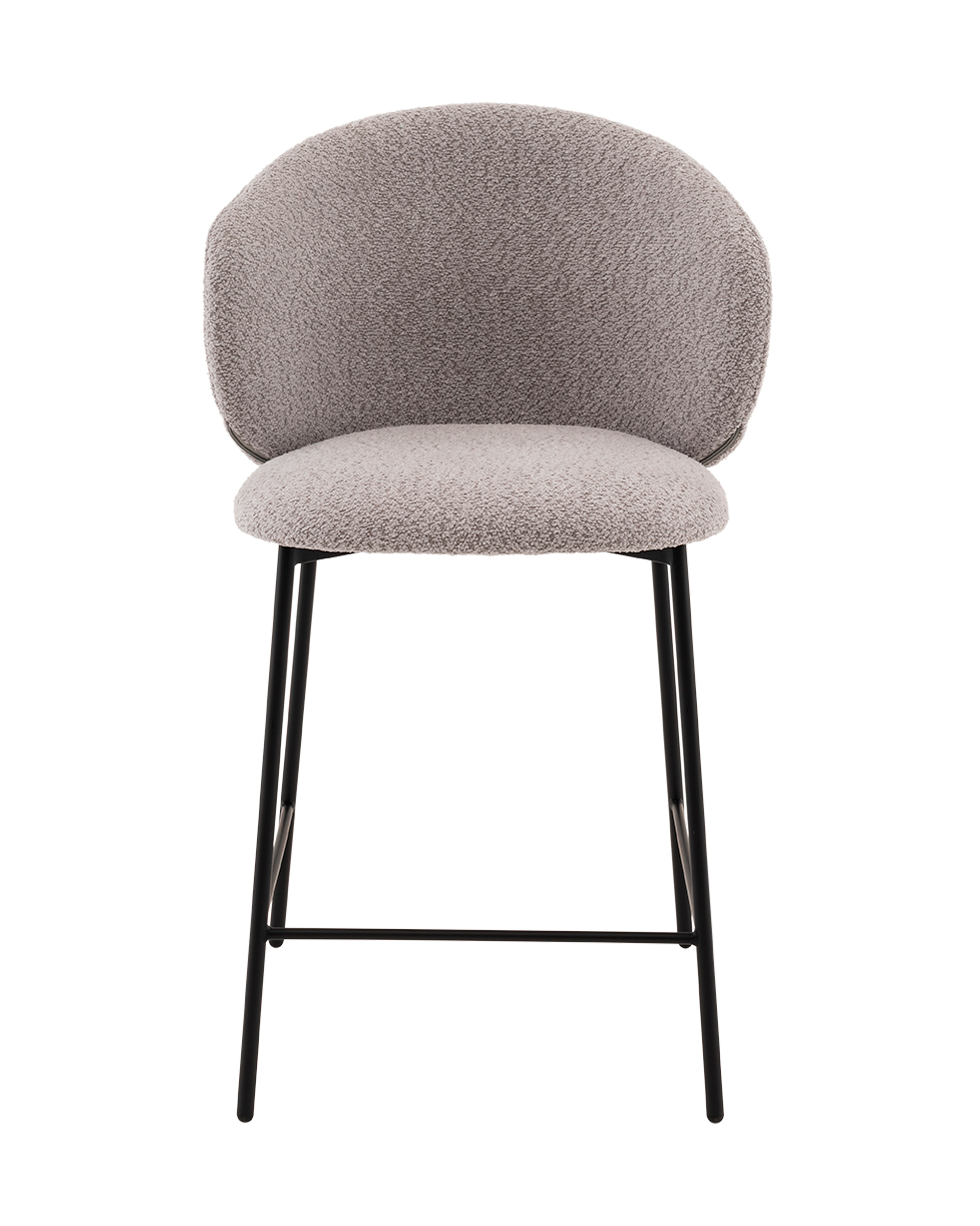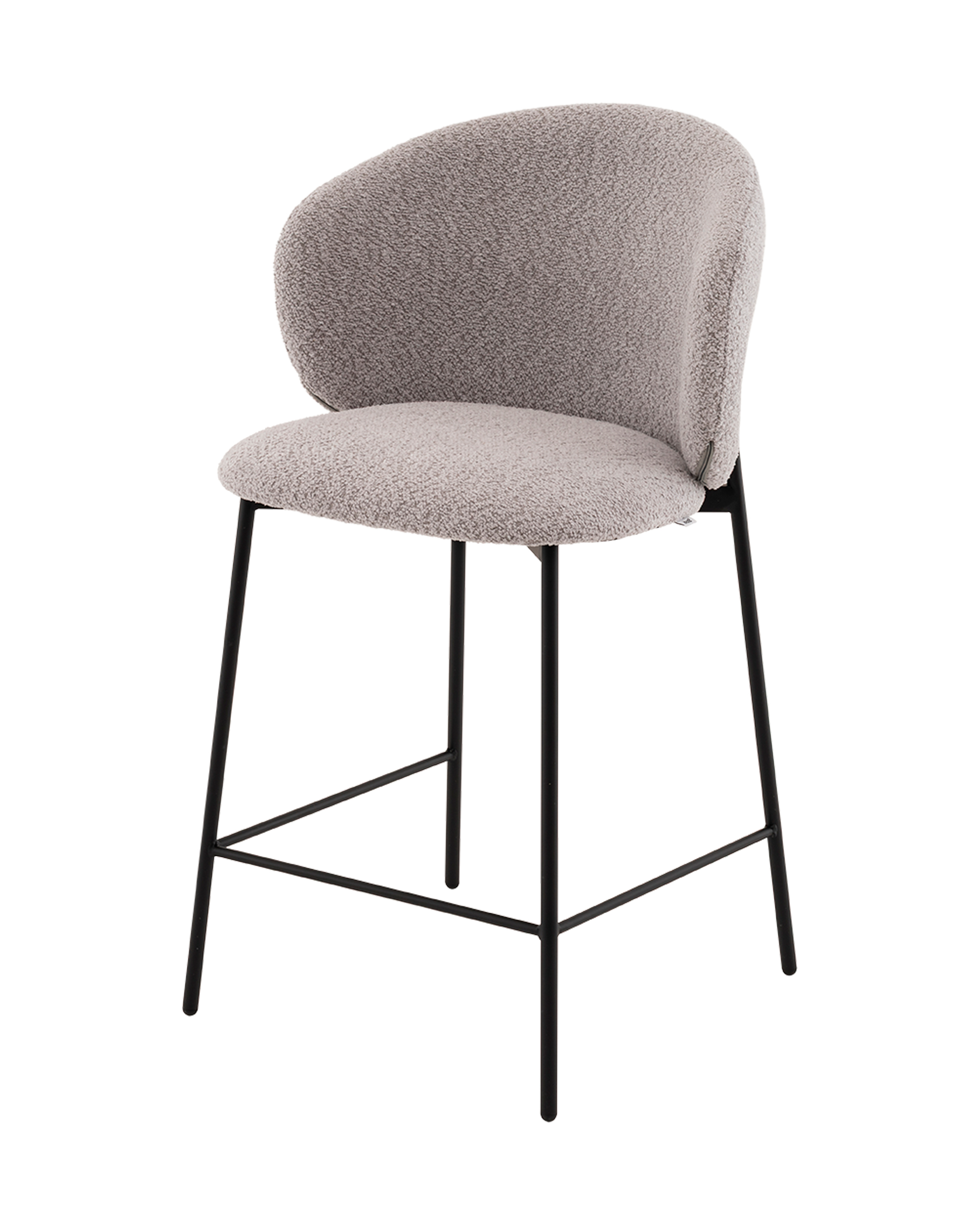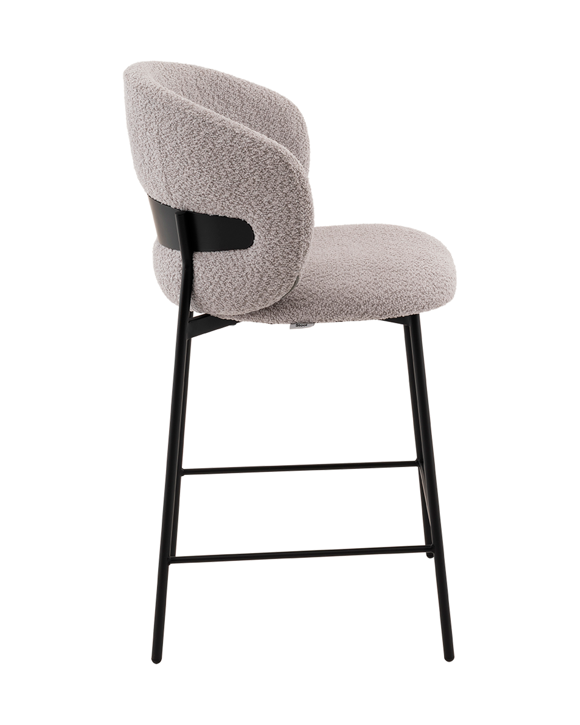 Удобство в каждой детали. Мягкое сиденье и спинка из букле обеспечивают комфорт, а округлая форма спинки поддерживает поясницу и создаёт уютное ощущение. Наличие подставки для ног делает посадку более расслабленной и естественной, особенно при длительном использовании.