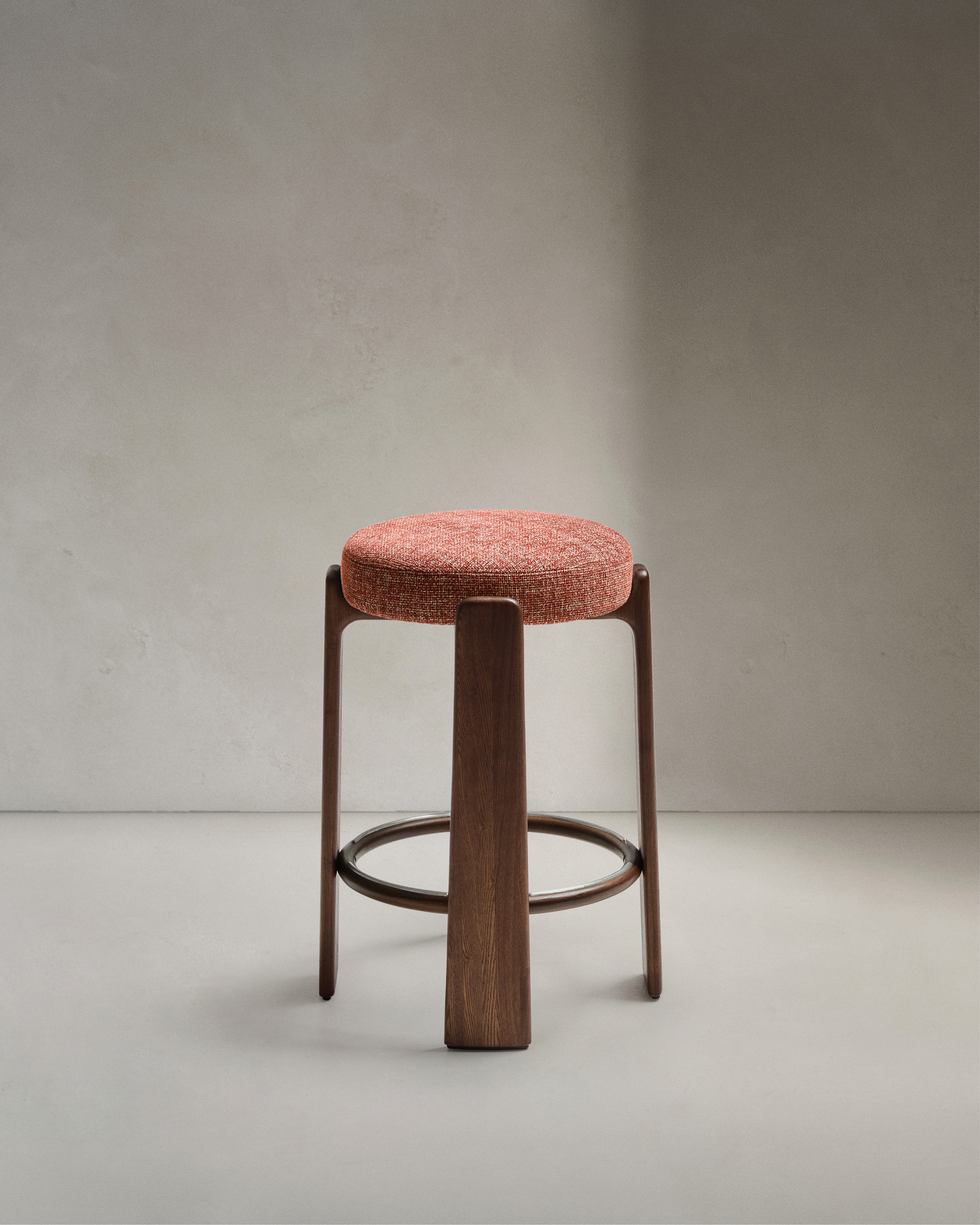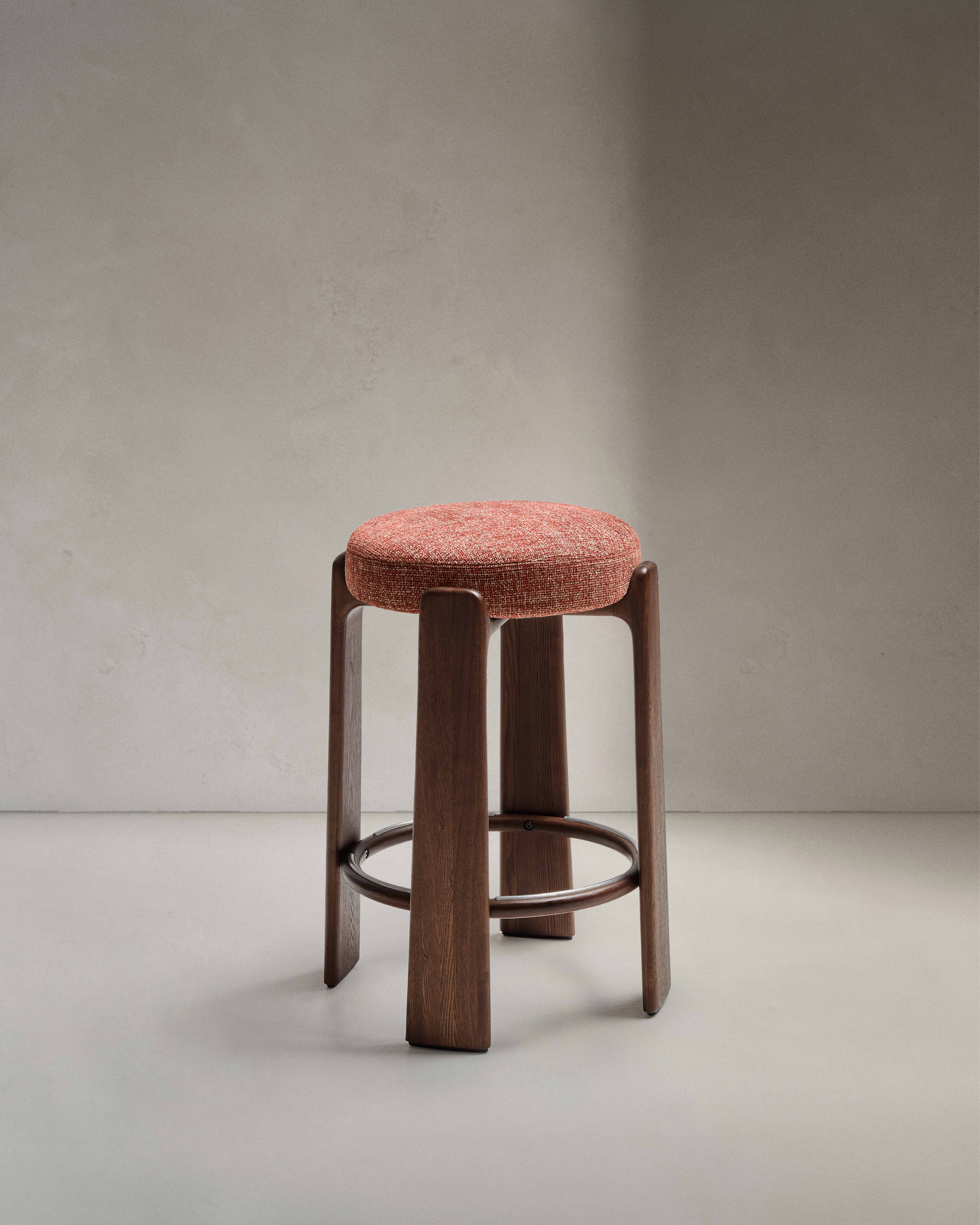 Granite Барный табурет из терракотового шенилла и массива ясеня в отделке орех 75 см