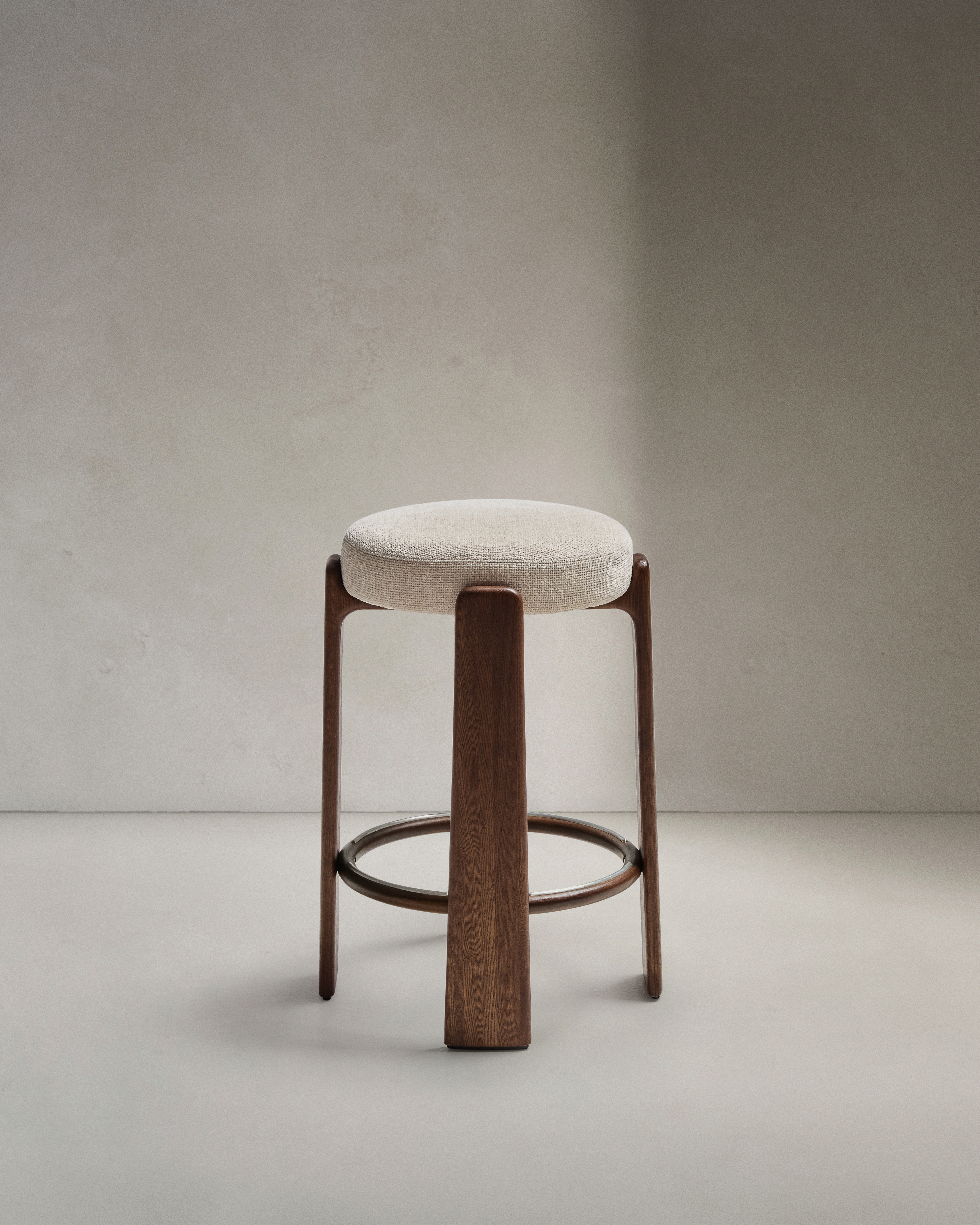 Granite Барный табурет из бежевого шенилла и массива ясеня в отделке орех 75 см