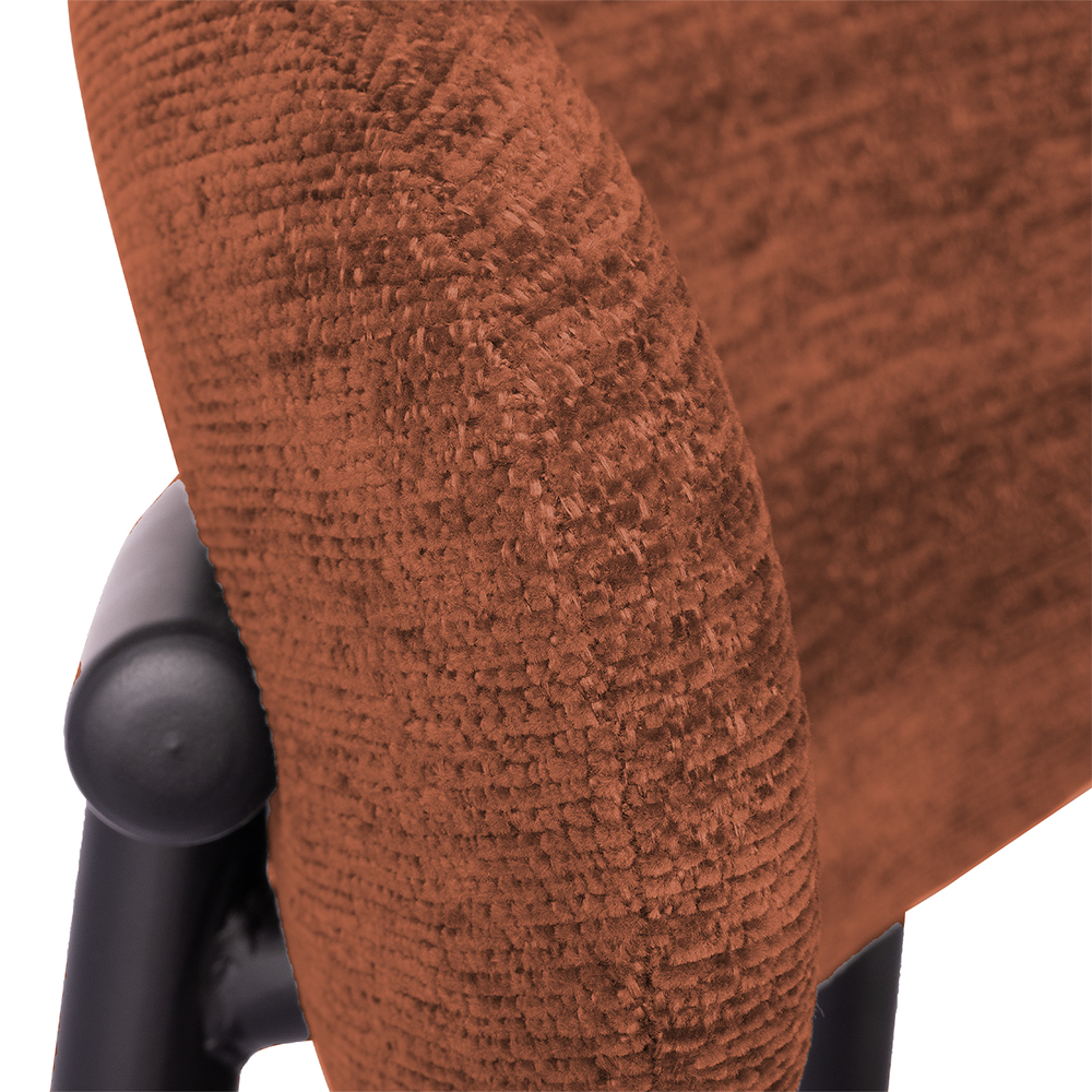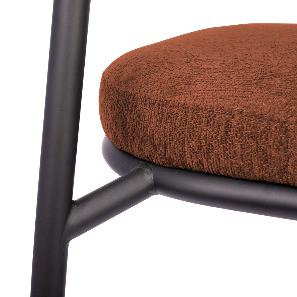 Сиденье и спинка стула выполнены из роскошной ткани букле, обладающей не только приятной на ощупь текстурой, но и высокой стойкостью к износу. Рельефная поверхность добавляет интерьеру натуральности, подчеркивает контуры стула и сглаживает жесткие формы, создавая гармонию в пространстве. Мелкозернистая фактура букле формирует теплую и спокойную атмосферу, приглашающую к отдыху.