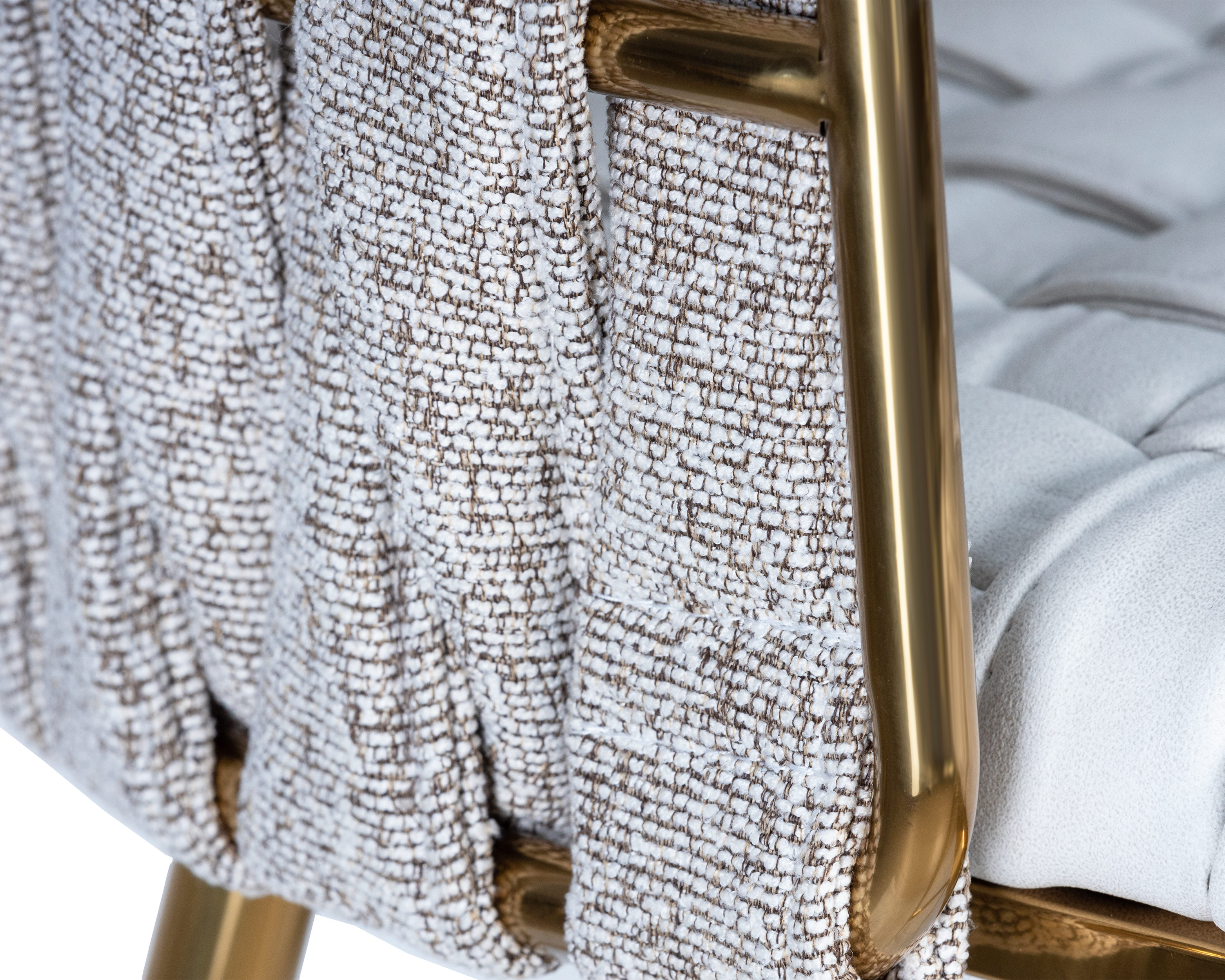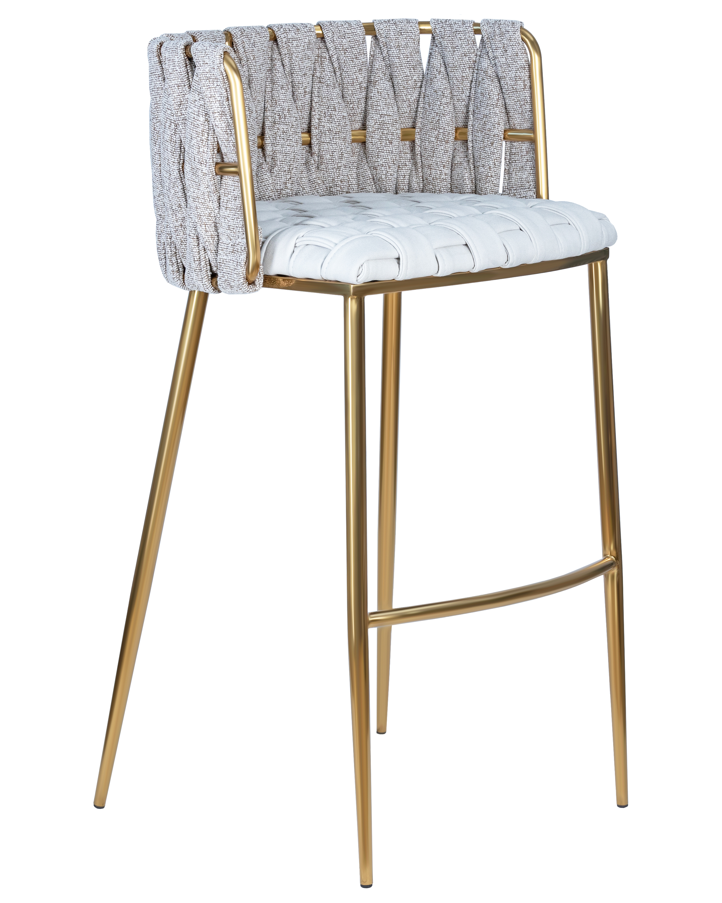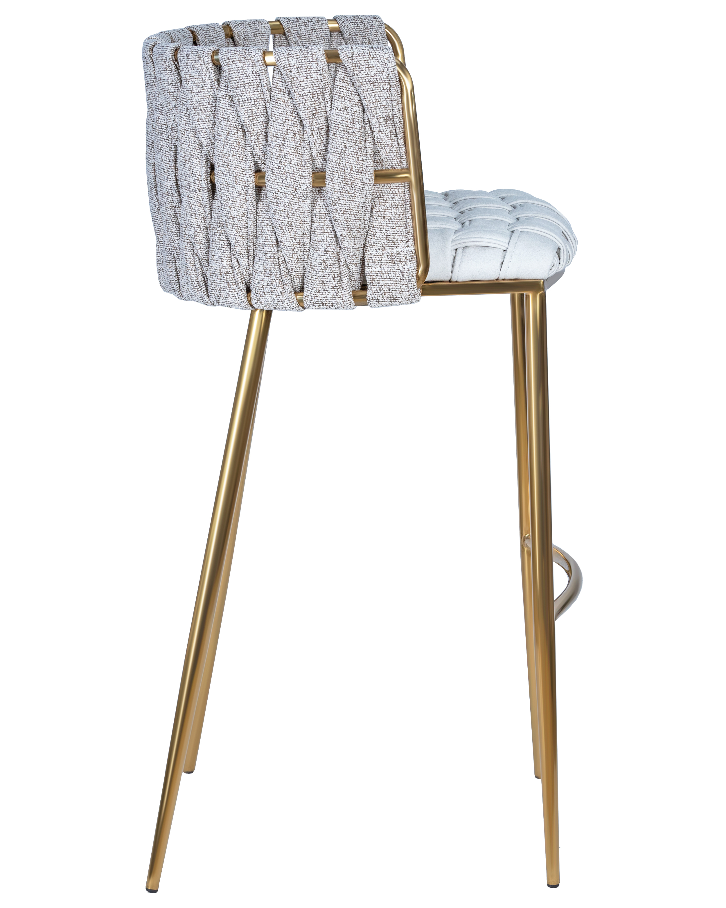 Набор 4 шт Стул барный DOBRIN EMMA GOLD, белый PU (T-01), белая ткань (F-49)
