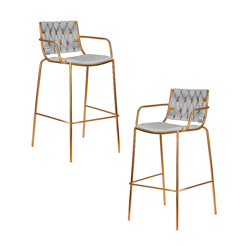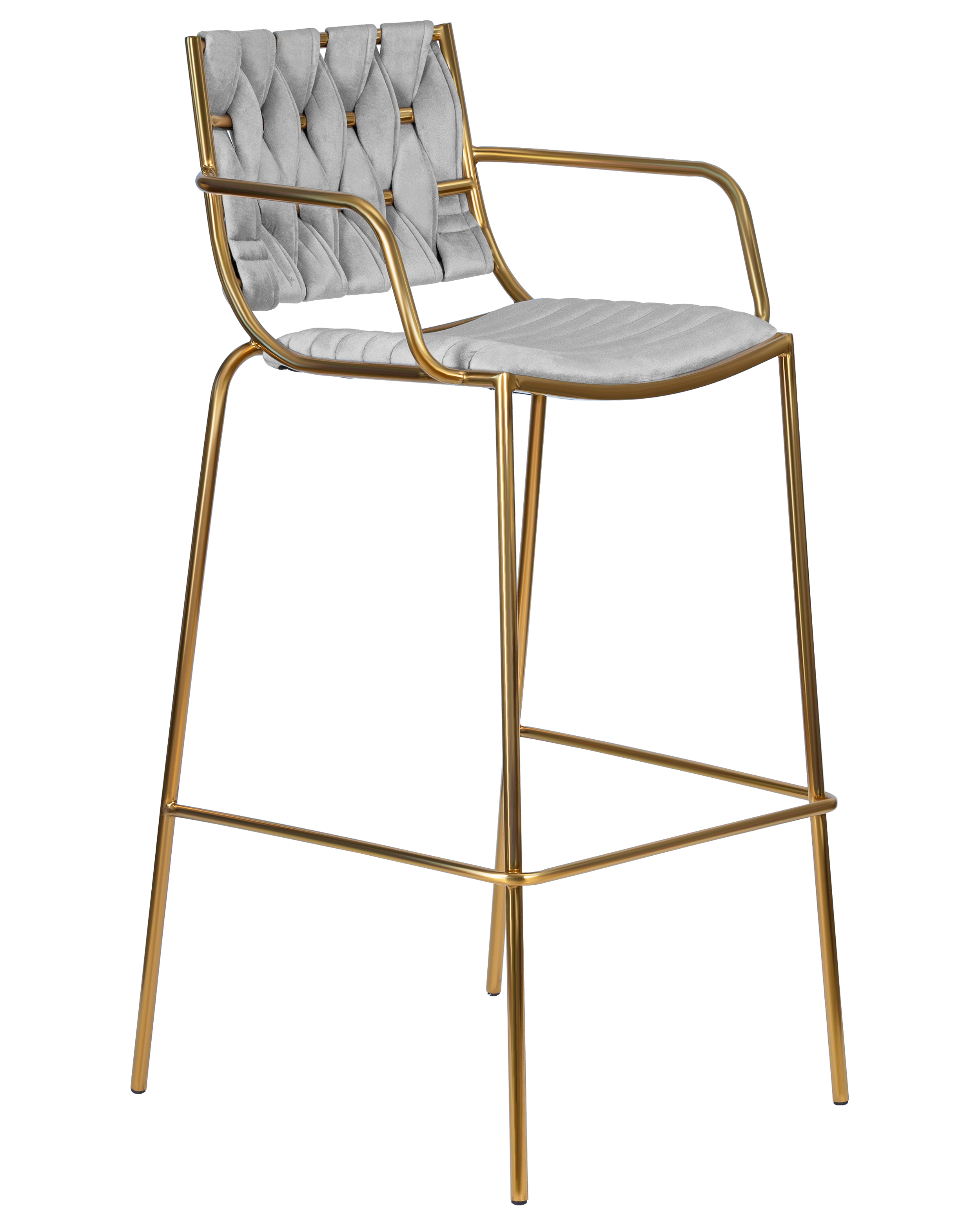 Набор 2 шт Стул барный DOBRIN MILLER GOLD, cветло-серый велюр (135-37)