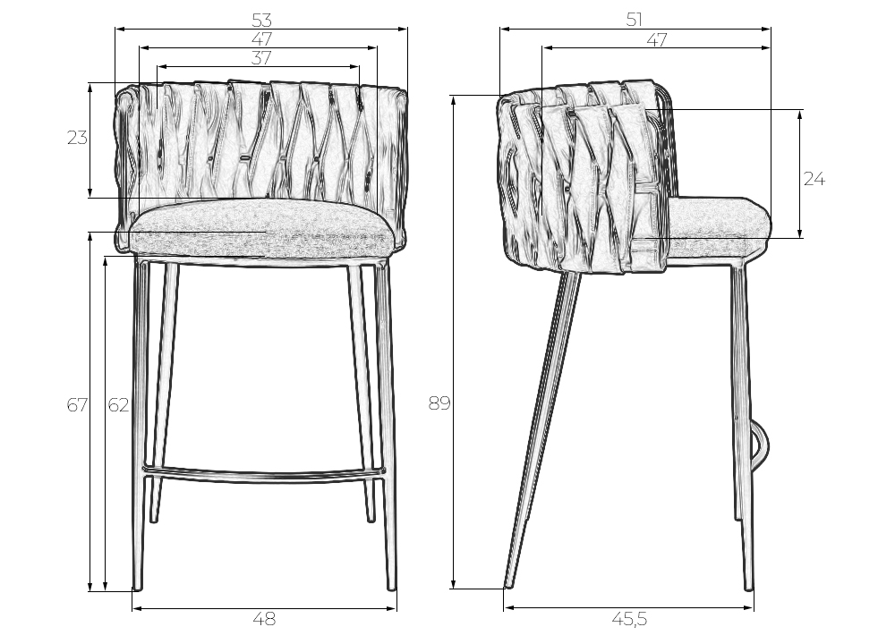 Набор 4 шт Стул полубарный DOBRIN AMELIA COUNTER, серая ткань (F-48), темно-серый винтажный PU (MF-12)