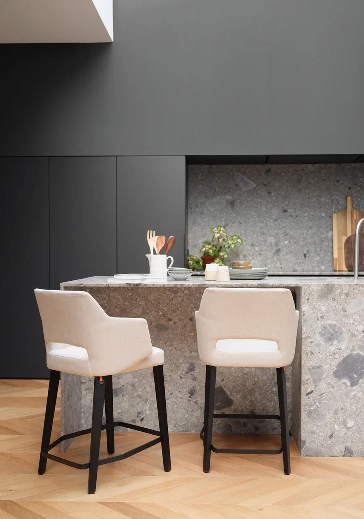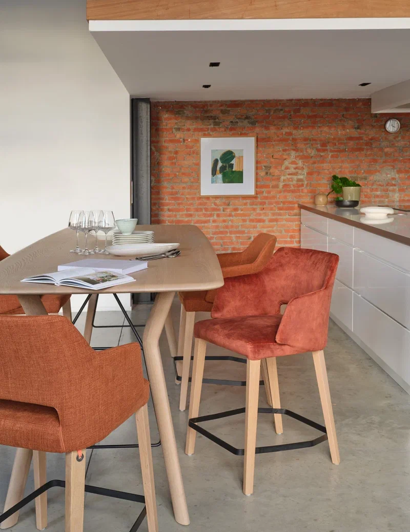Запросить индивидуальное предложениеПолубарные стулья для столов и барных стоек с высотой столешницы 88-92 см. Мягкая эргономичная спинка деликатно поддерживает спину, а встроенные в каркас горизонтальные пружины nosag создают упругую базу для сидения из многослойной пены. Легкие в уходе обивки с фактурой рогожки или льна: износостойкость 100 000 мартиндейл, повседневный уход и очищение от пятен обычной водой.