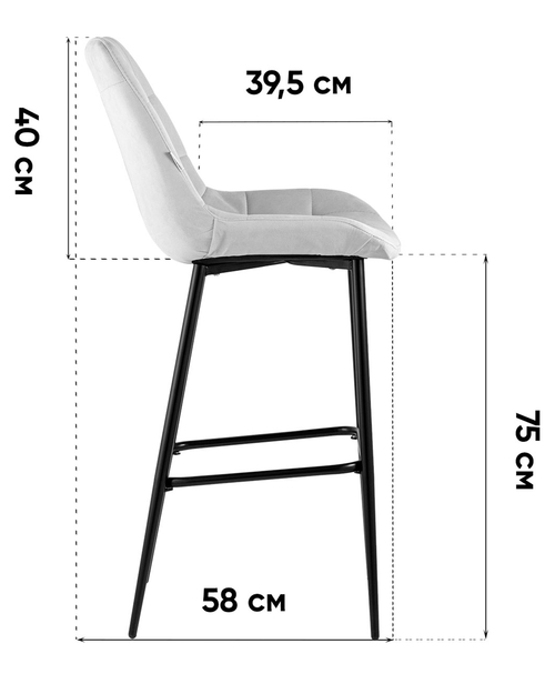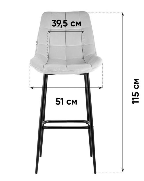 Современный барный стул в мягкой обивке из велюра без подлокотников.