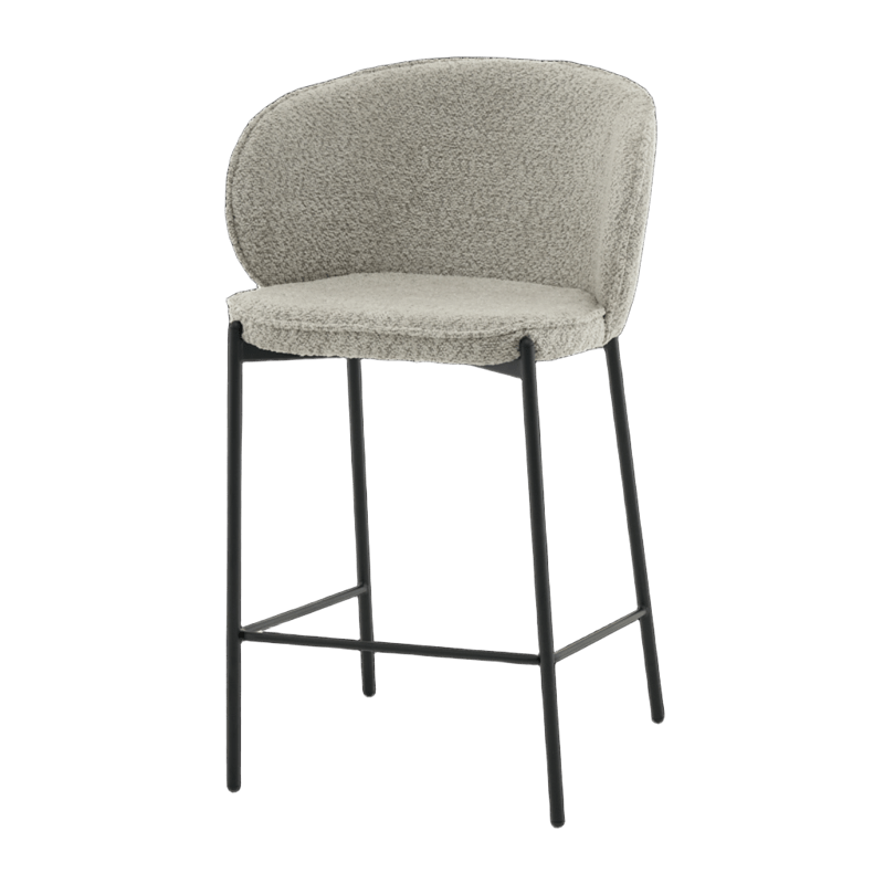 Сиденье и спинка обтянуты букле – приятным на ощупь износостойкими достаточно долговечным материалом. Внутренняя сторона спинки имеет красивую вертикальную стежку, которая украсит интерьер. Ножки изготовлены из металла и окрашены в черный цвет, они прочные и выдерживают большие нагрузки до 120 кг. Наличие подставки для ног делает посадку более расслабленной и естественной, особенно при длительном использовании.