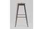 Сиденье на высоте 77 см удобно для барной стойки или высокого стола. За счет характерной выемки в центре его удобно перемещать, а перекладины между ножками обеспечивают дополнительную устойчивость и возможность опоры для ног.
