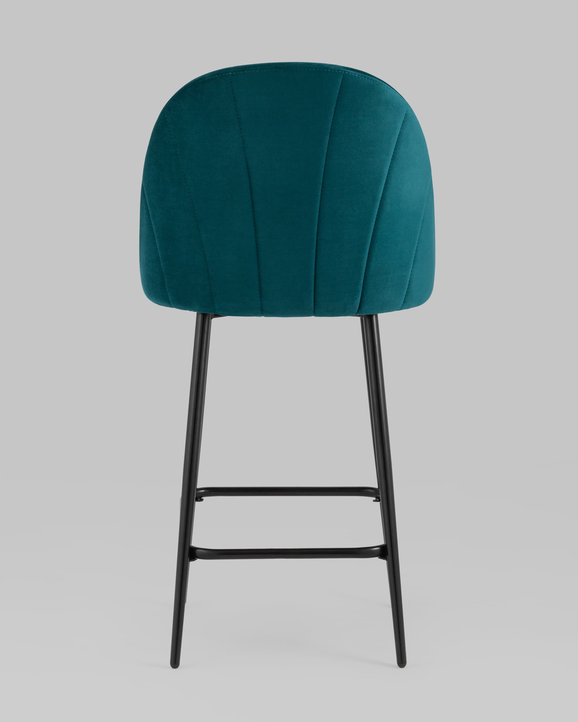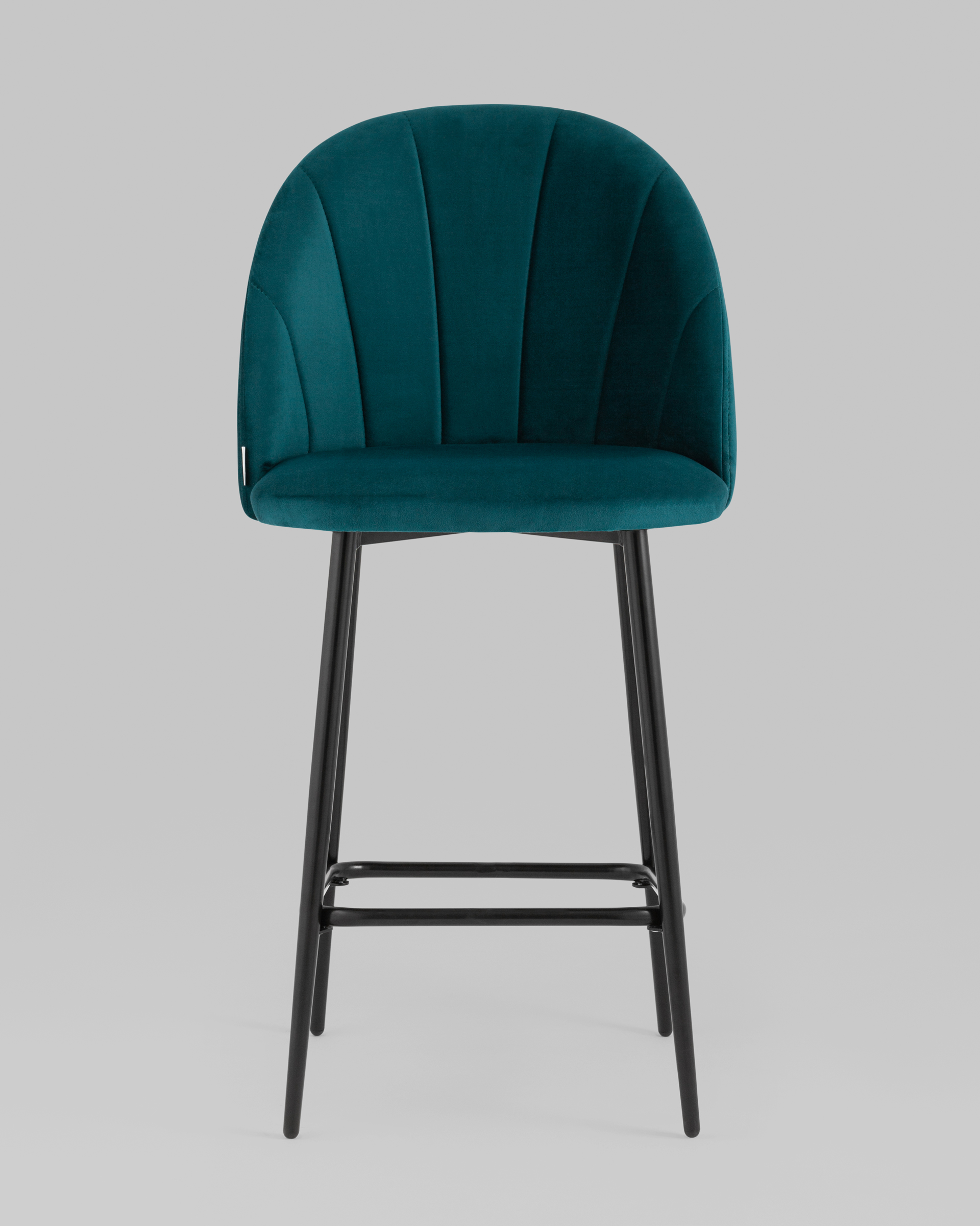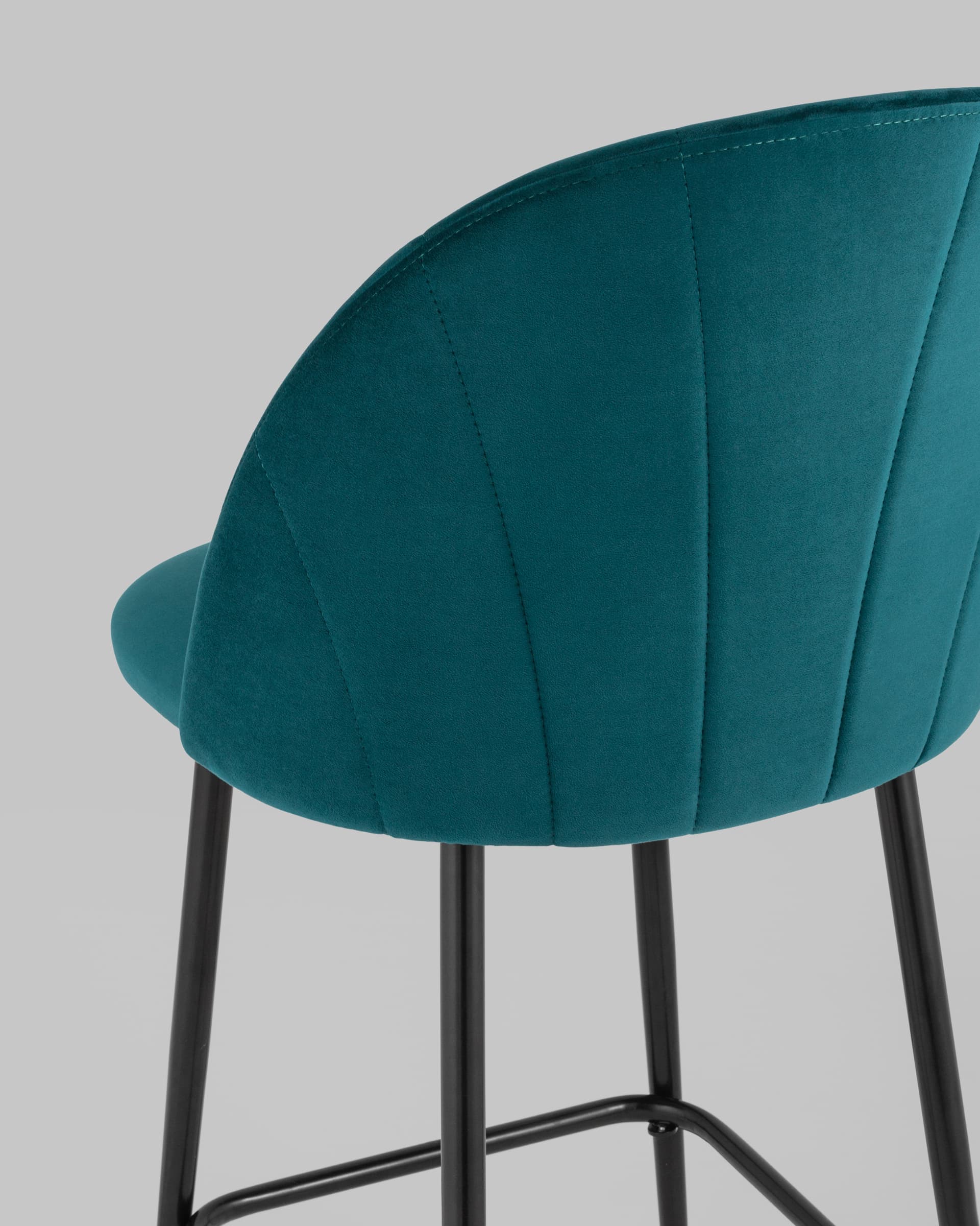 Сидение обтянуто мебельным велюром – приятным на ощупь износостойким, гигроскопичным материалом. Ткань обладает способностью быстро восстанавливать первоначальную форму после механического воздействия или намокания. Обивка на спинке имеет вертикальную стежку в виде веера. Ножки изготовлены из металла и окрашены в черный цвет.