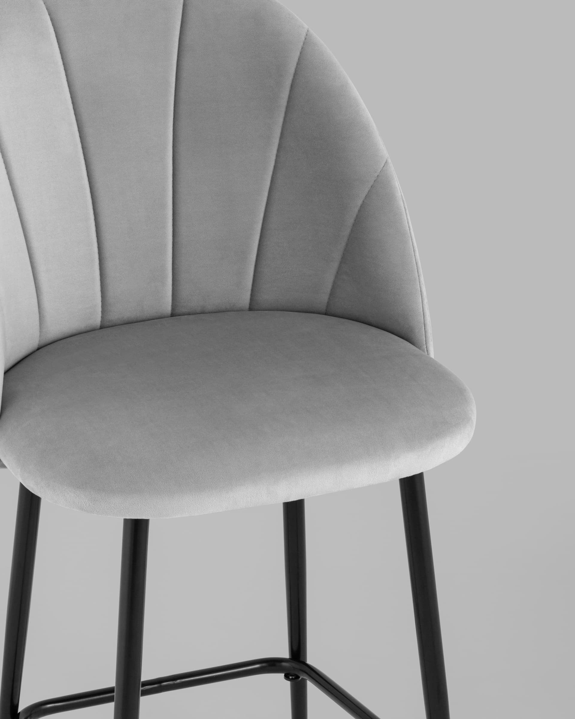 Сидение обтянуто мебельным велюром – приятным на ощупь износостойким, гигроскопичным материалом. Ткань обладает способностью быстро восстанавливать первоначальную форму после механического воздействия или намокания. Обивка на спинке имеет вертикальную стежку в виде веера. Ножки изготовлены из металла и окрашены в черный цвет.