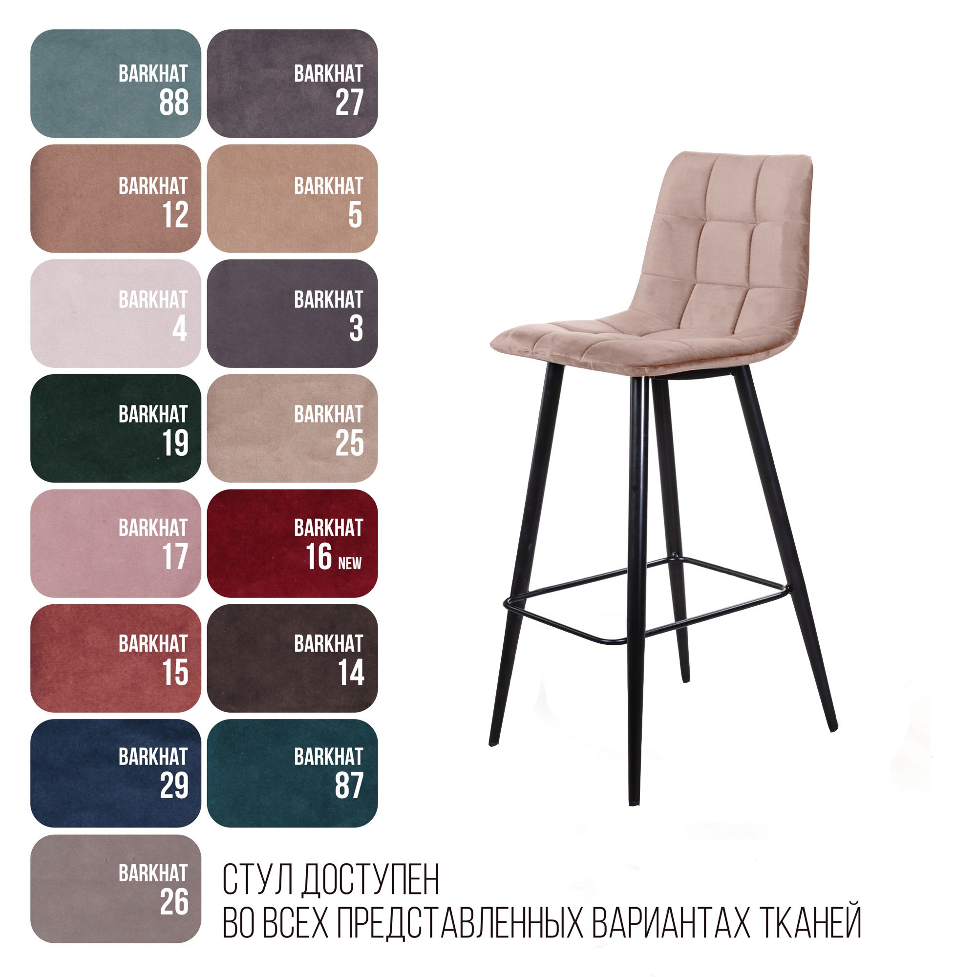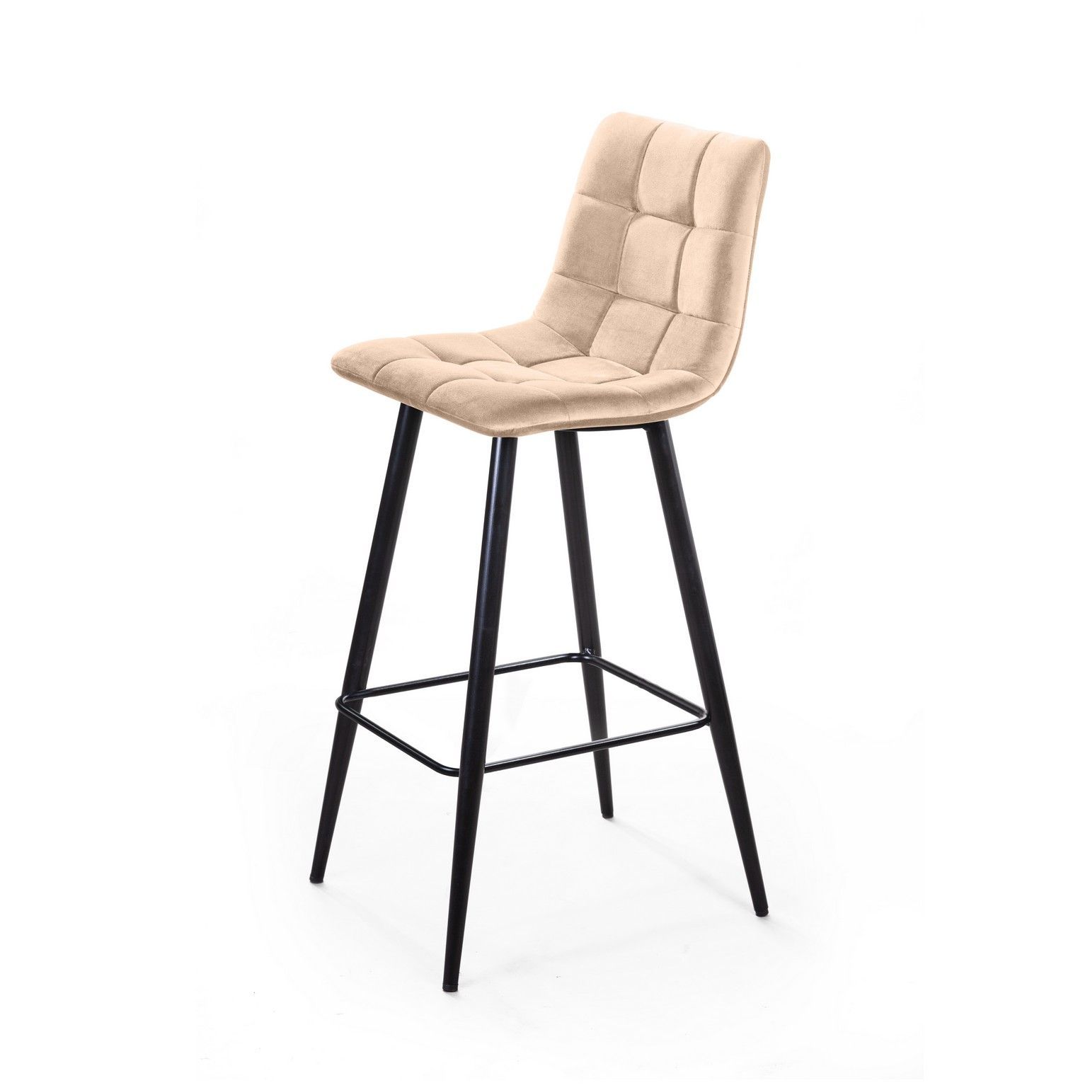 Стул барный Уно, бархат бежевый 5/ чёрный конус