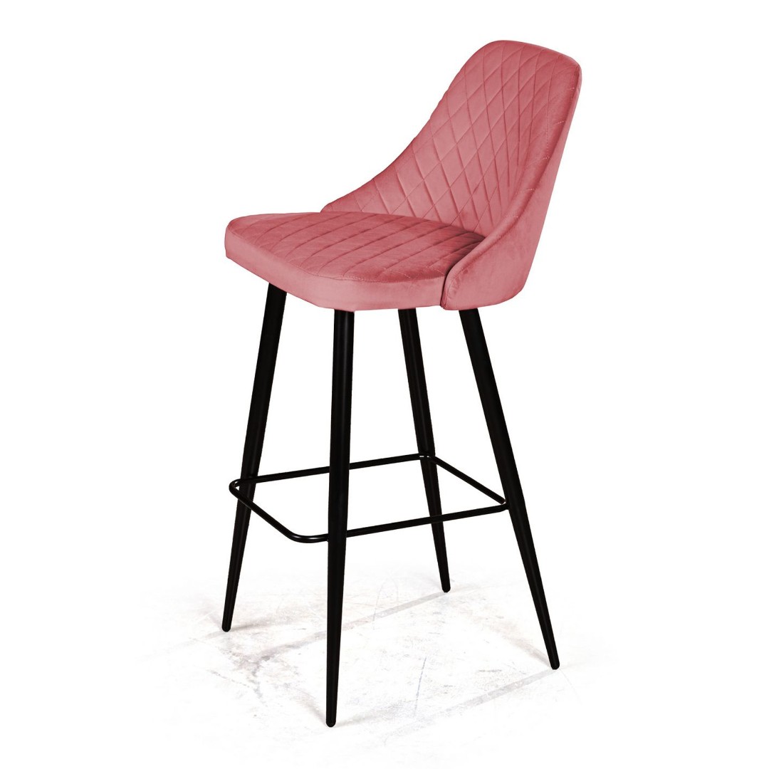 Стул барный William, бархат пудровый 15/ черный конус 74940