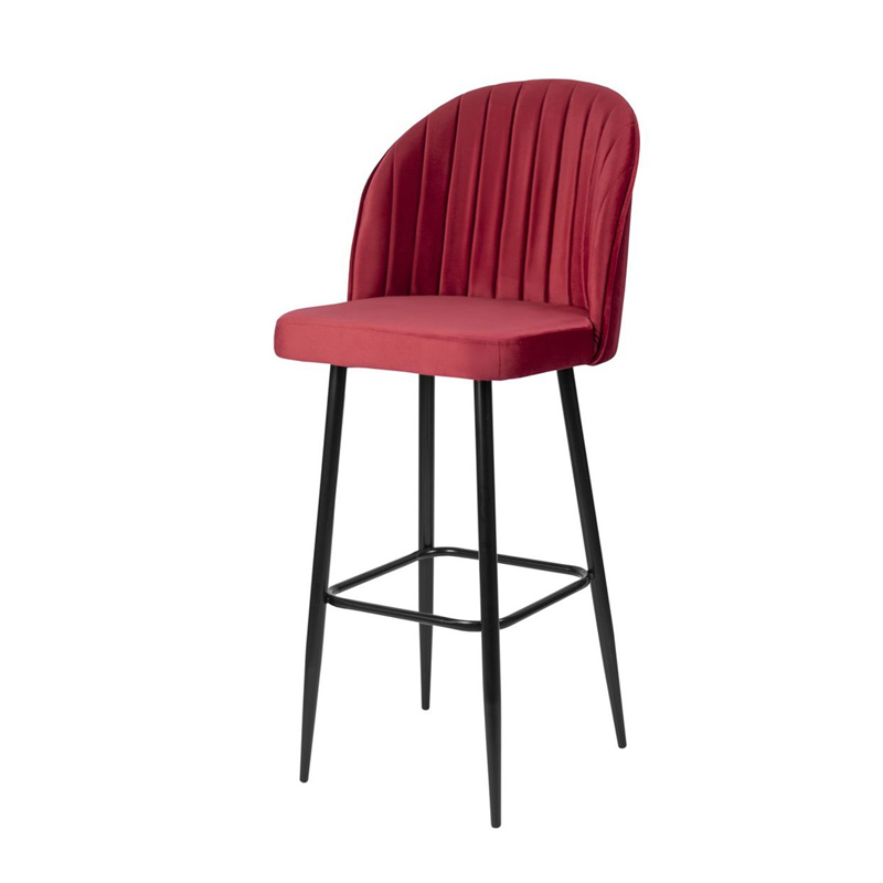 Барный стул Тони, велюр красный Bella 04, металл черный
