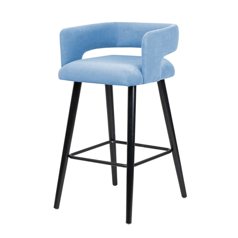 Стул барный Mars, голубой велюр/ черный каркас
