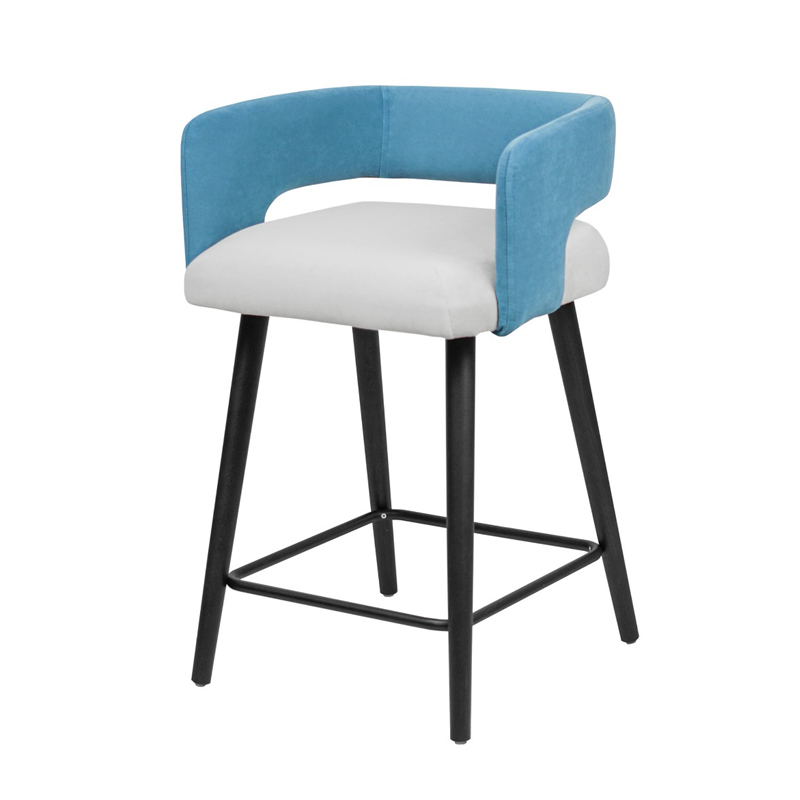 Стул барный Mars, велюр teddy 023 молочный/ teddy 663 голубой, черная морилка