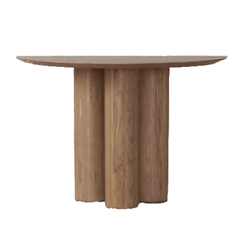 Запросить индивидуальное предложениеКонсоль выполненный в минималистичном стиле, легко впишется пространство оформленное в стилях Ваби Саби, Джапанди, Японский минимализм, минимализм. Опоры- представляют из собой комплект столбов выполненных из массива дуба. Устойчивость обеспечена внутренним металлокаркасным конструктивом. Столешница данной модели исполнена из МДФ шпонированного дубом, надежность покрытия обеспечена износостойким матовым лаком. Данная модель стола представлена в одном цветовом решении цвета натурального дуба.