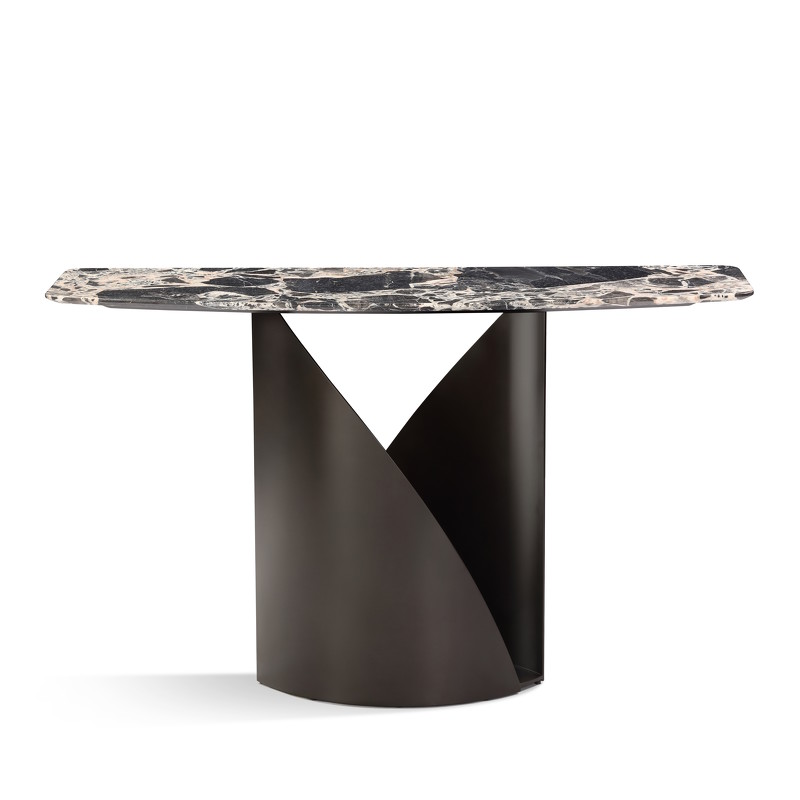 Основание консоли металлическое в черном цвете, столешница - роскошный черный мрамор Bulgari. Такая консоль абсолютно точно станет украшением вашего интерьера, добавив в него нотку элегантности.