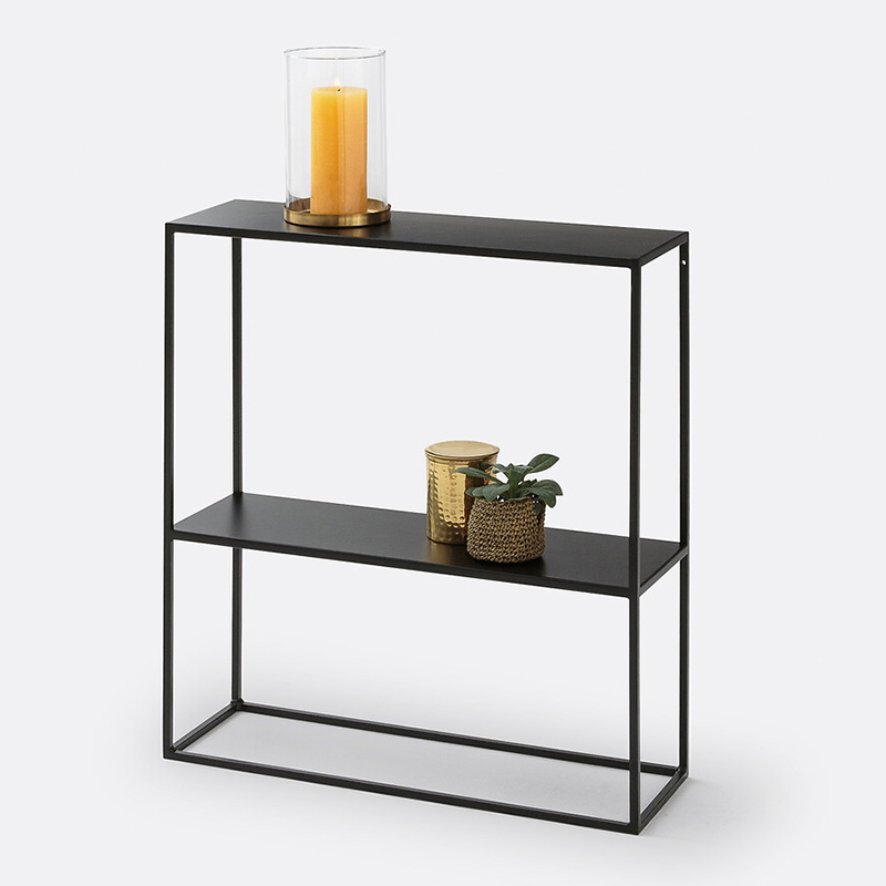 Запросить индивидуальное предложениеОписание черного металлического консольного столика с двумя столешницами HIBA: